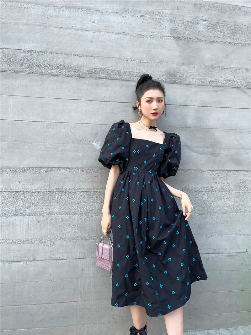 スタンダードFlowerデザイン スリーブワンピーススプリング夏服スタイル レトロ 大人ガーリー スウィート キュート カジュアル エレガント 春物 夏物 フラワーデザイン スクウェア GroundMODE266708944638 | pleglad Ground
