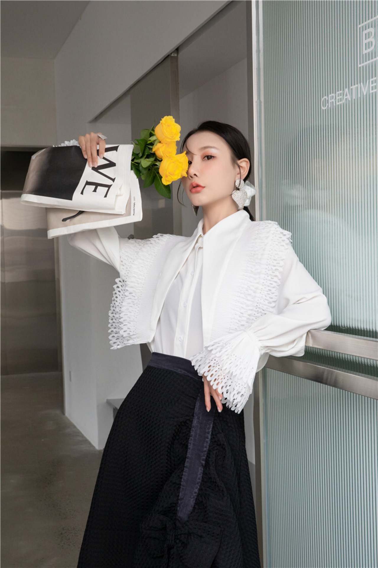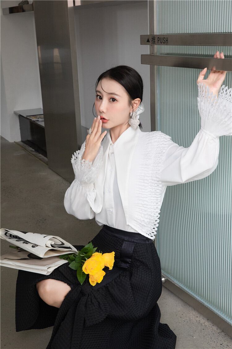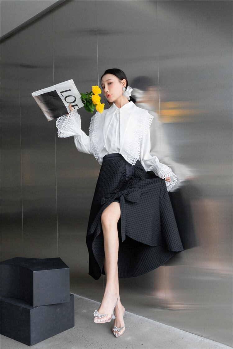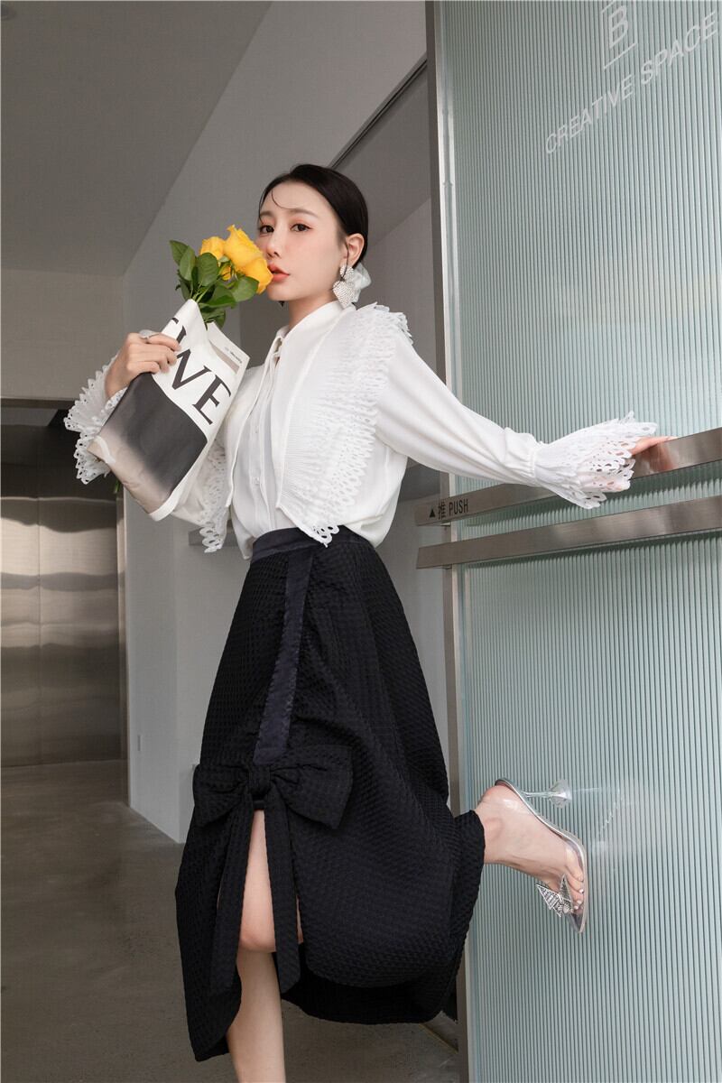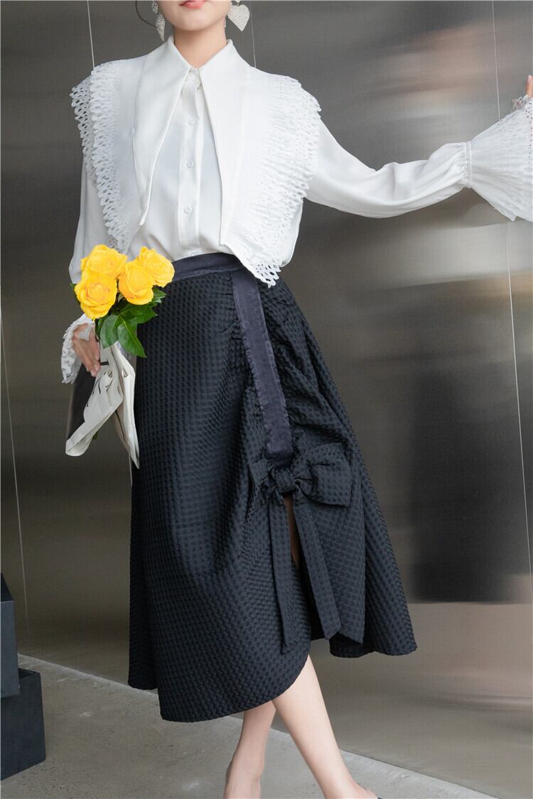 色:白のシャツ,黒のAラインマーメイドスカート