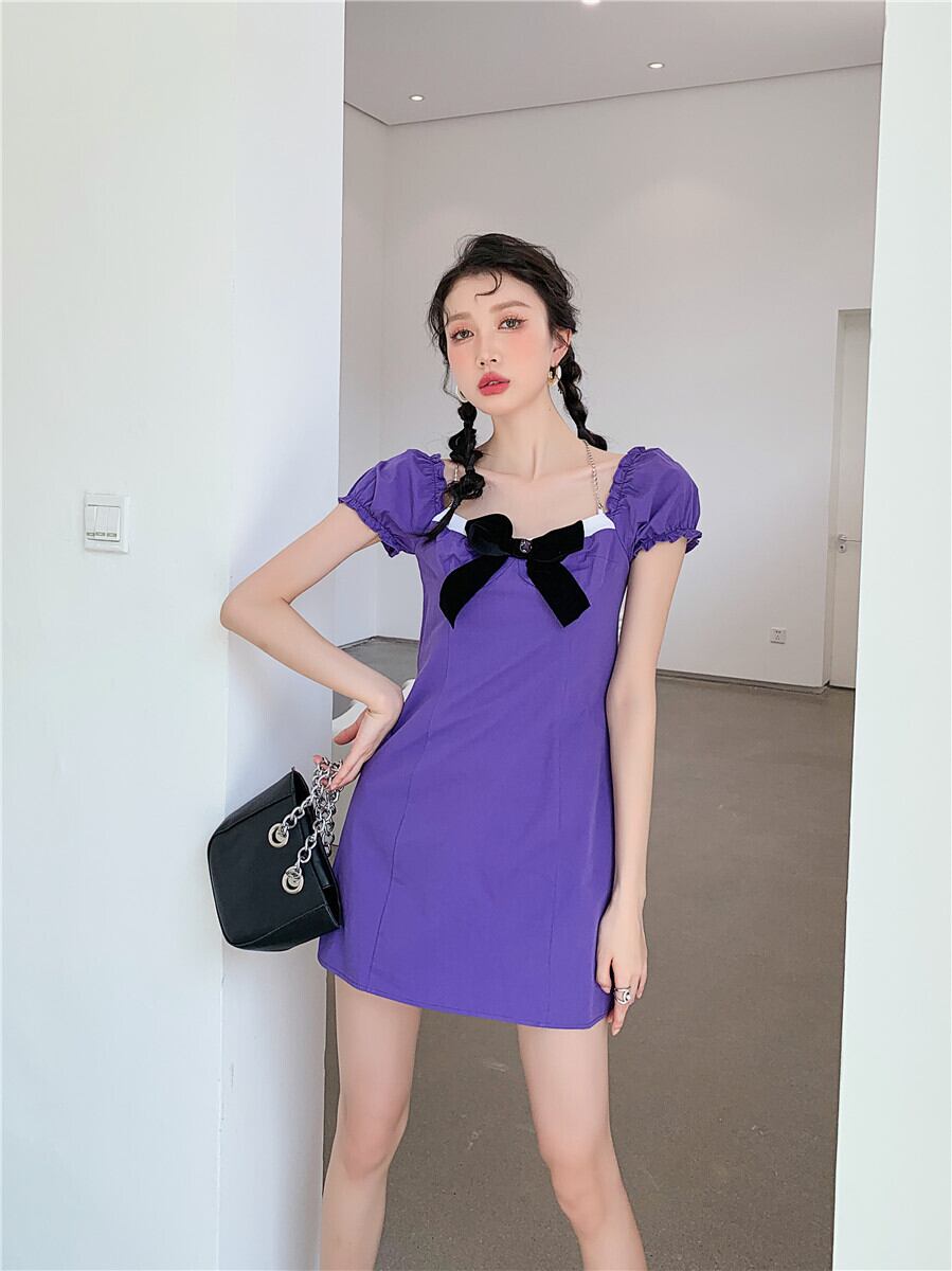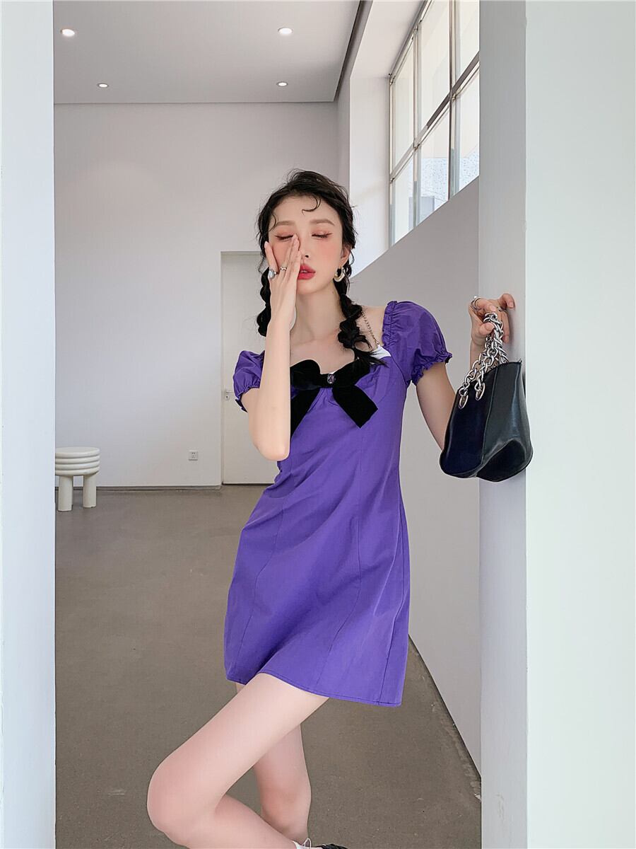 スタンダードミニ ワンピースワンピースレディース夏服ウェストスカート レトロ 大人ガーリー スウィート キュート カジュアル 夏物 スクウェア ウエスト GroundMODE281028959342 | pleglad Ground