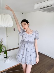 カラースリーブパールButterflyデザイン ワンピース夏服 大人ガーリー スウィート キュート カジュアル 夏物 真珠 スクウェア GroundMODE240992669600 | pleglad Ground