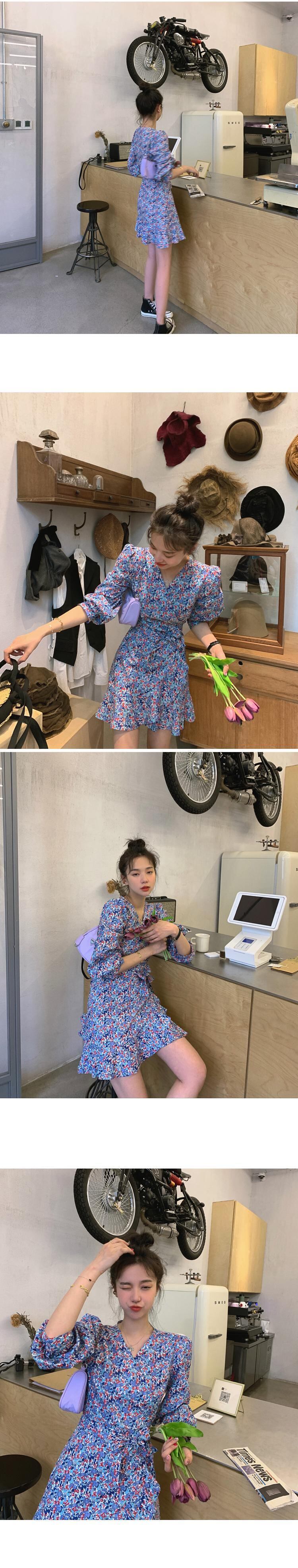 秋物スタンダードフローラルワンピースレディース薄手ウェストスカート ロング レトロ 大人ガーリー スウィート キュート カジュアル オータム 花柄 長袖 ウエスト GroundMODE261821050294 | pleglad Ground