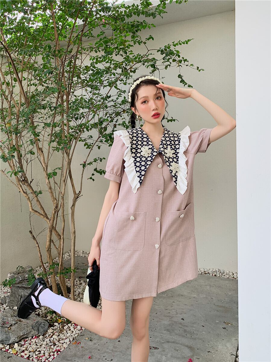 ヴィンテージパウダー刺繍Flowerデザイン カラーパールワンピースシャツ スカート 真珠 フラワーデザイン ビンテージ ミドル丈 GroundMODE229257981938 | pleglad Ground
