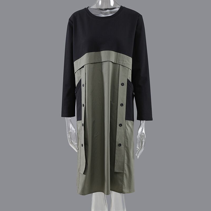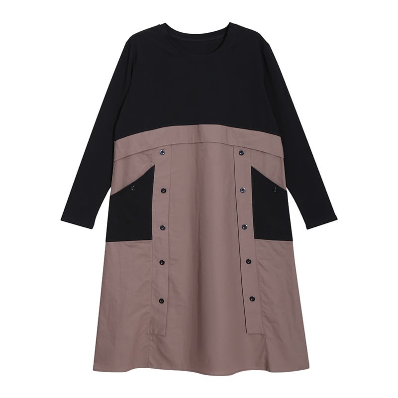 秋物スタイルボタンルーズスカート ワンピース ロング 大きめサイズ 原宿 オータム 長袖 ミドル丈 GroundMODE86691970547