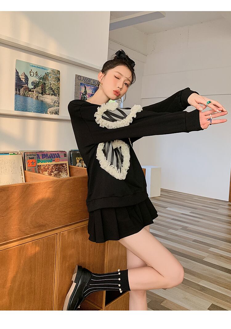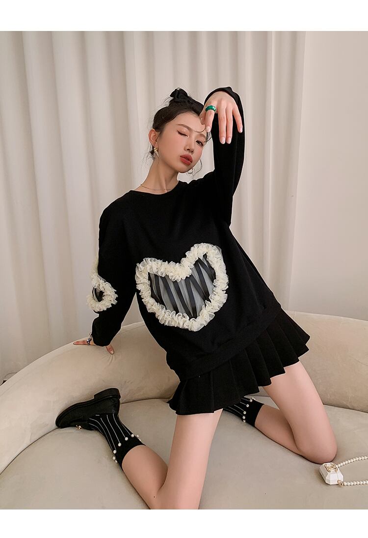 レースブラックセーター ラウンドネック薄手トップス ロング 大人ガーリー スウィート キュート カジュアル Oネック 長袖 GroundMODE22668936643 | pleglad Ground