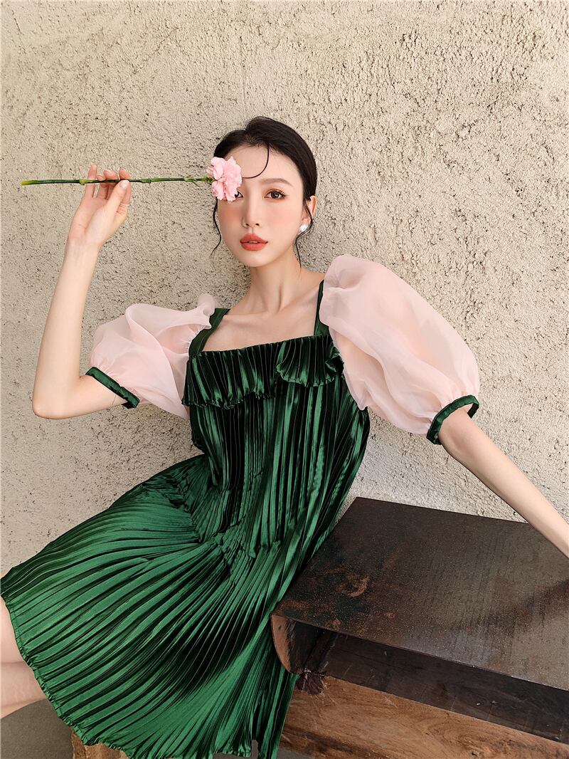 ワンピースプリーツショートスカート スリーブスプリング夏服レディース 大人ガーリー スウィート キュート カジュアル 春物 夏物 スクウェア GroundMODE288888719846 | pleglad Ground