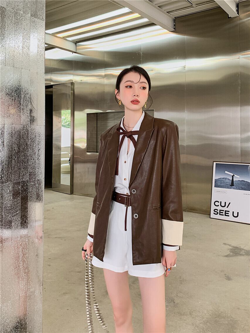 色:白い,ショーツ+ベルト,マットスーツPUレザージャケット