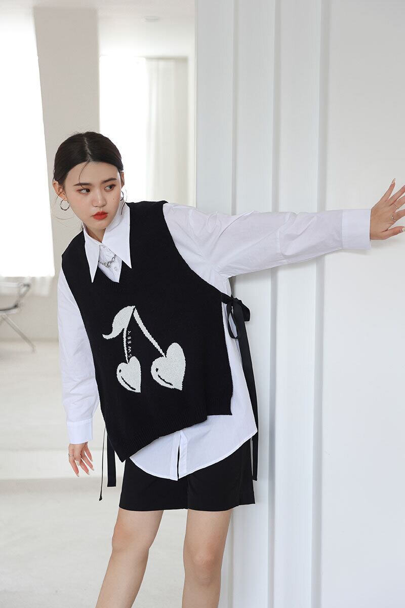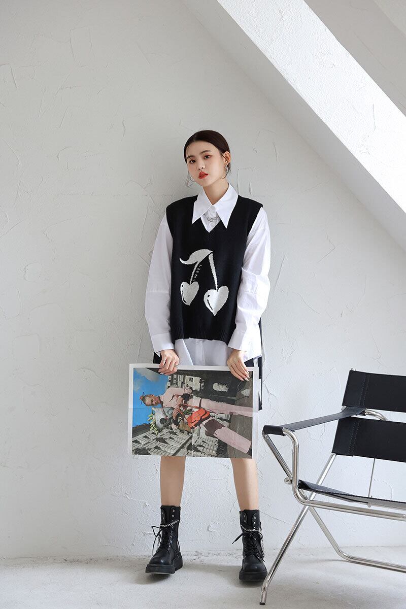 色:ツーピースの黒と白のスーツ