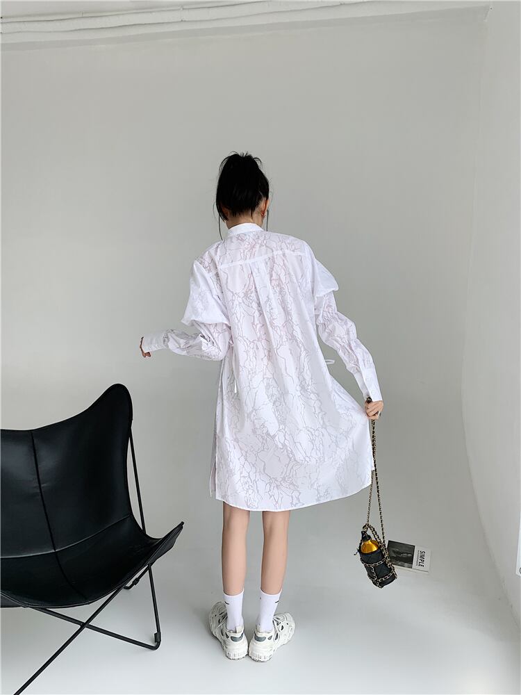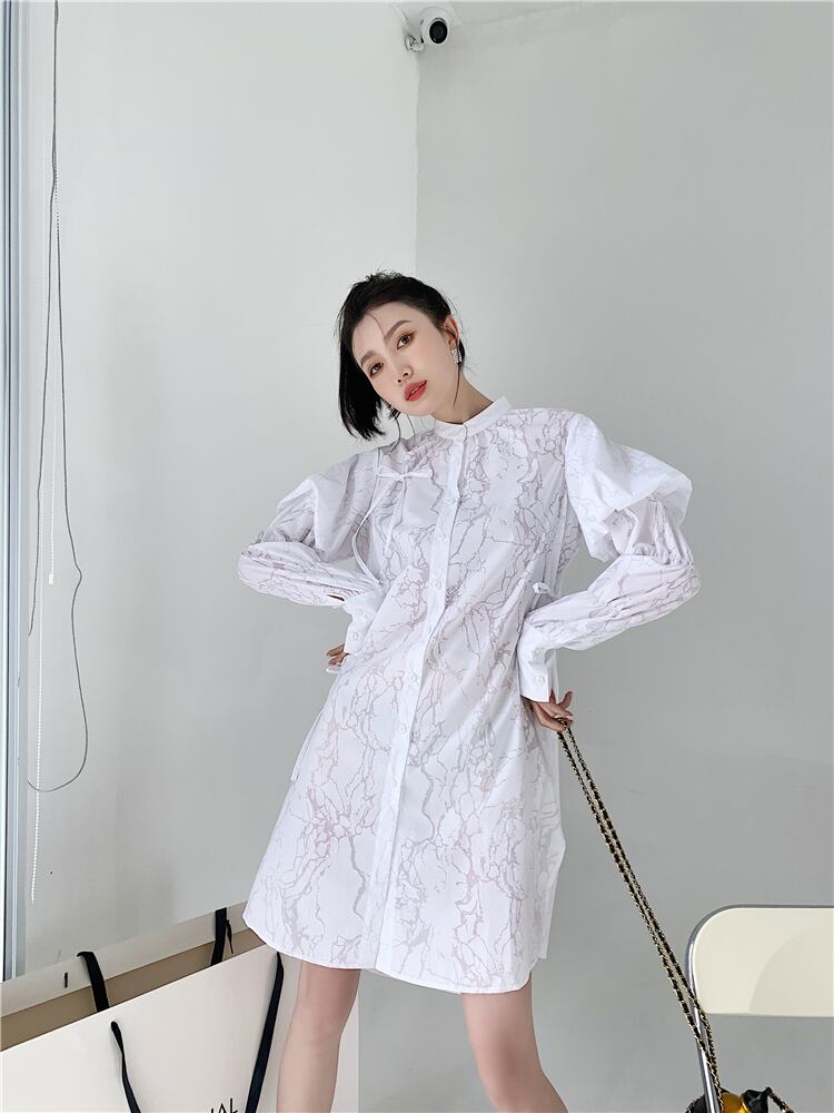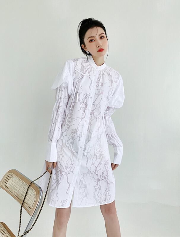 Flowerデザイン ダークパターンワンピースレディーススプリングギャザーウェストシャツ スカート 春物 フラワーデザイン ウエスト GroundMODE249669623591 | pleglad Ground