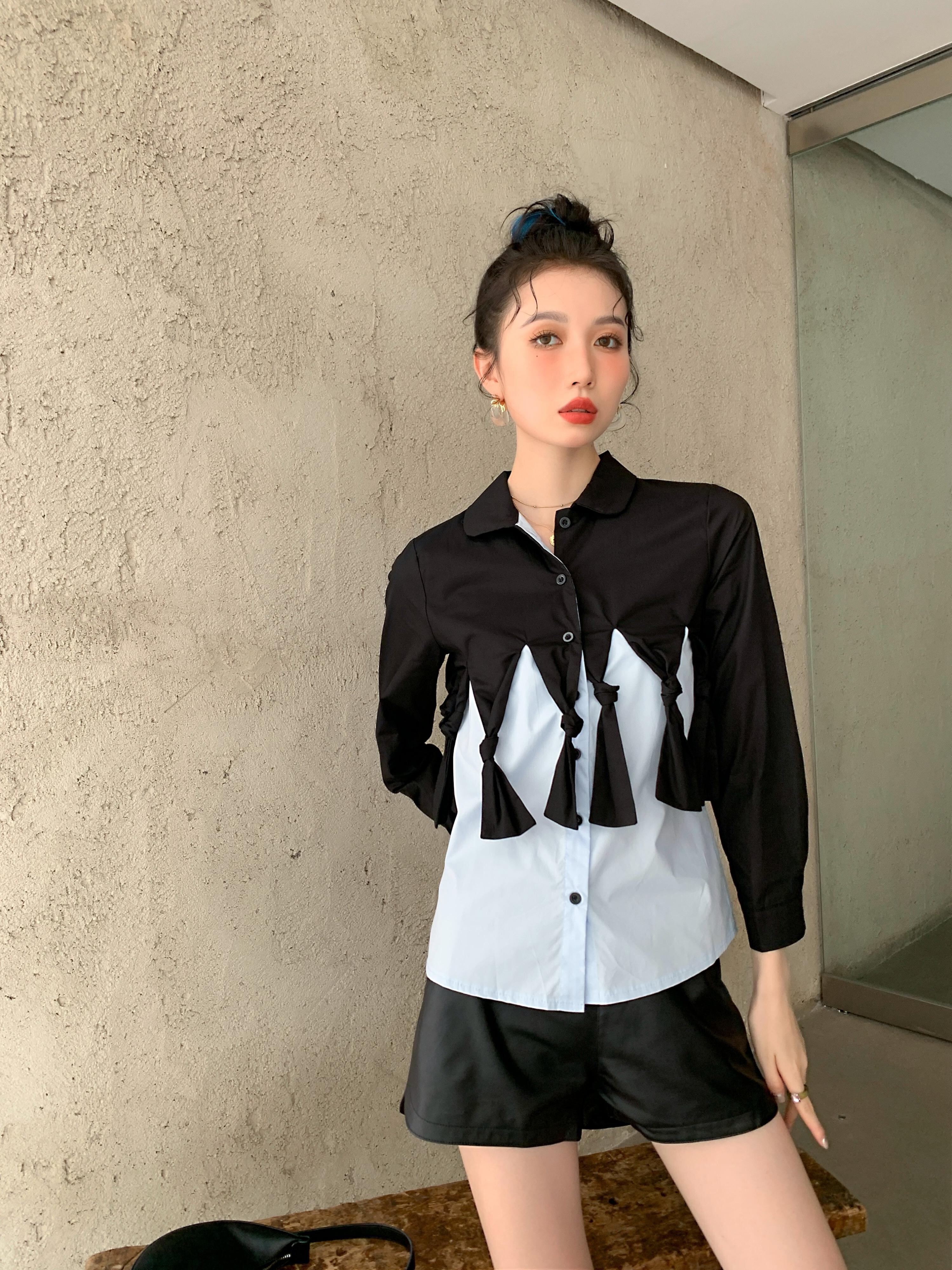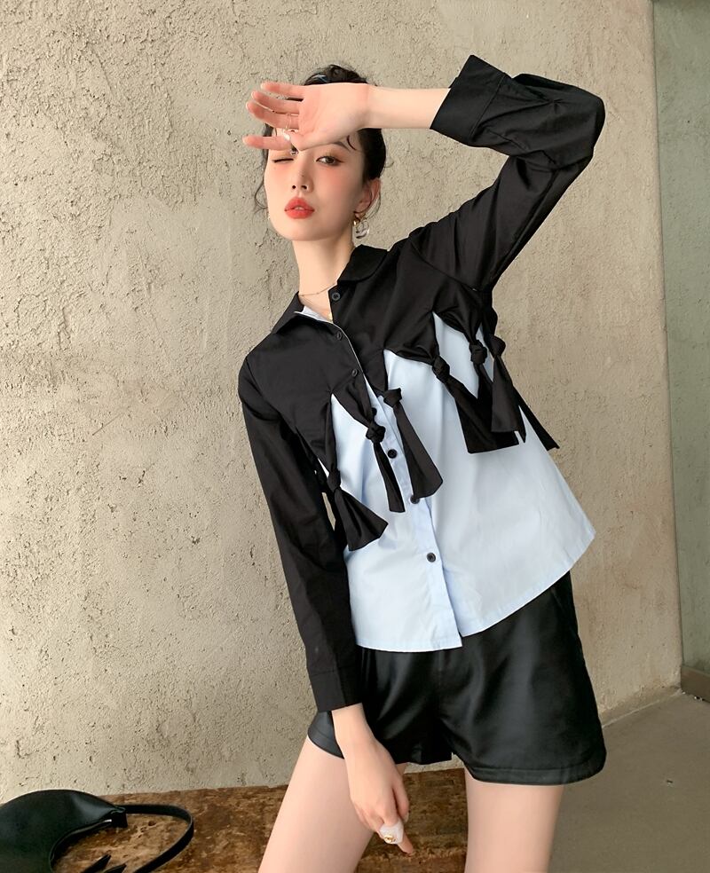 色:黒と青のシャツ