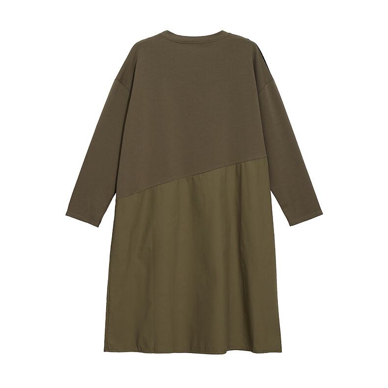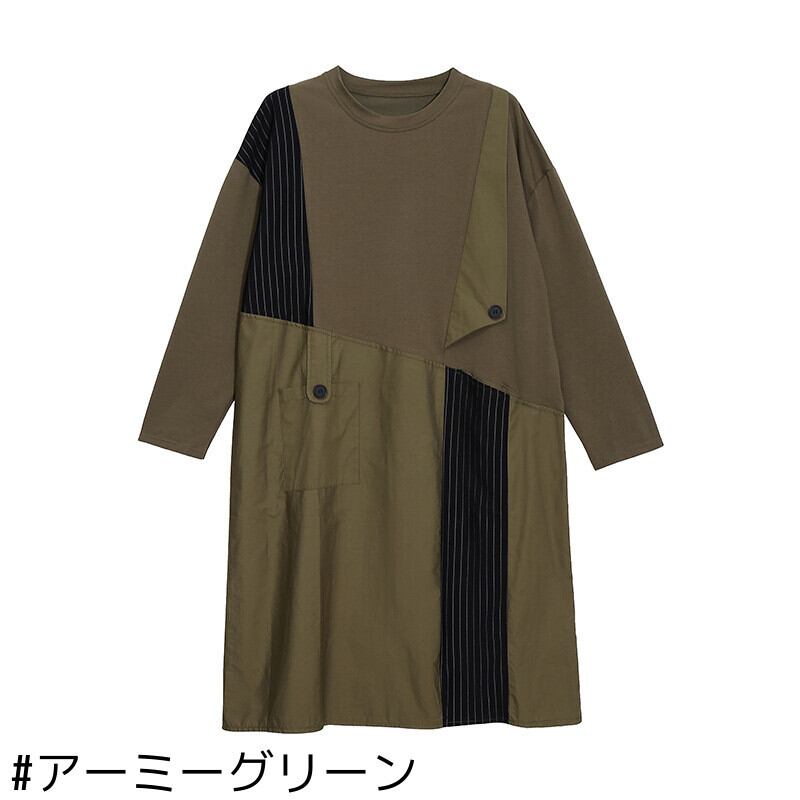 ストライプスカート スタイルカジュアルルーズワンピース ロング 大きめサイズ ステッチ 長袖 ミドル丈 GroundMODE16294414500