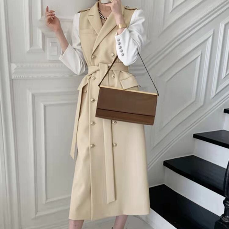 カラーダブルブレストコート スカート 秋物韓国ファッションワンピース オータム GroundMODE54123529325