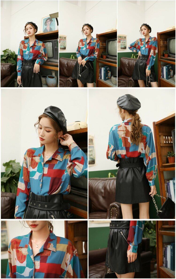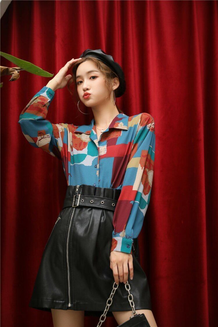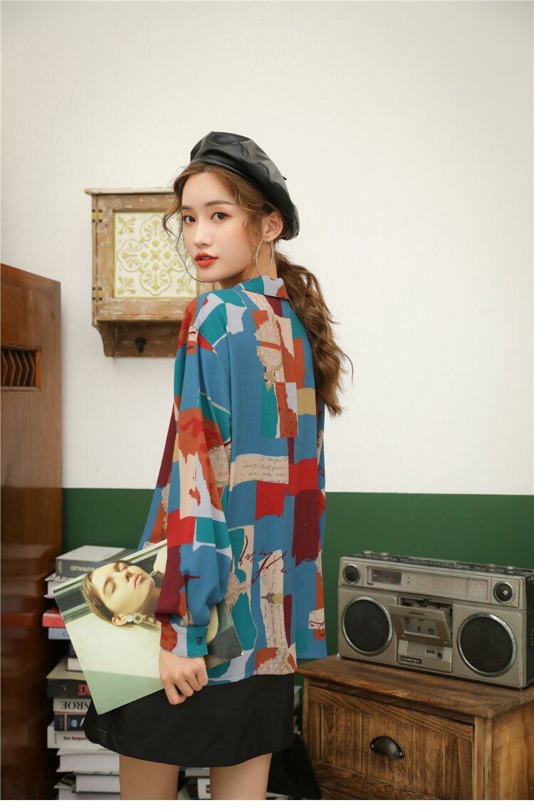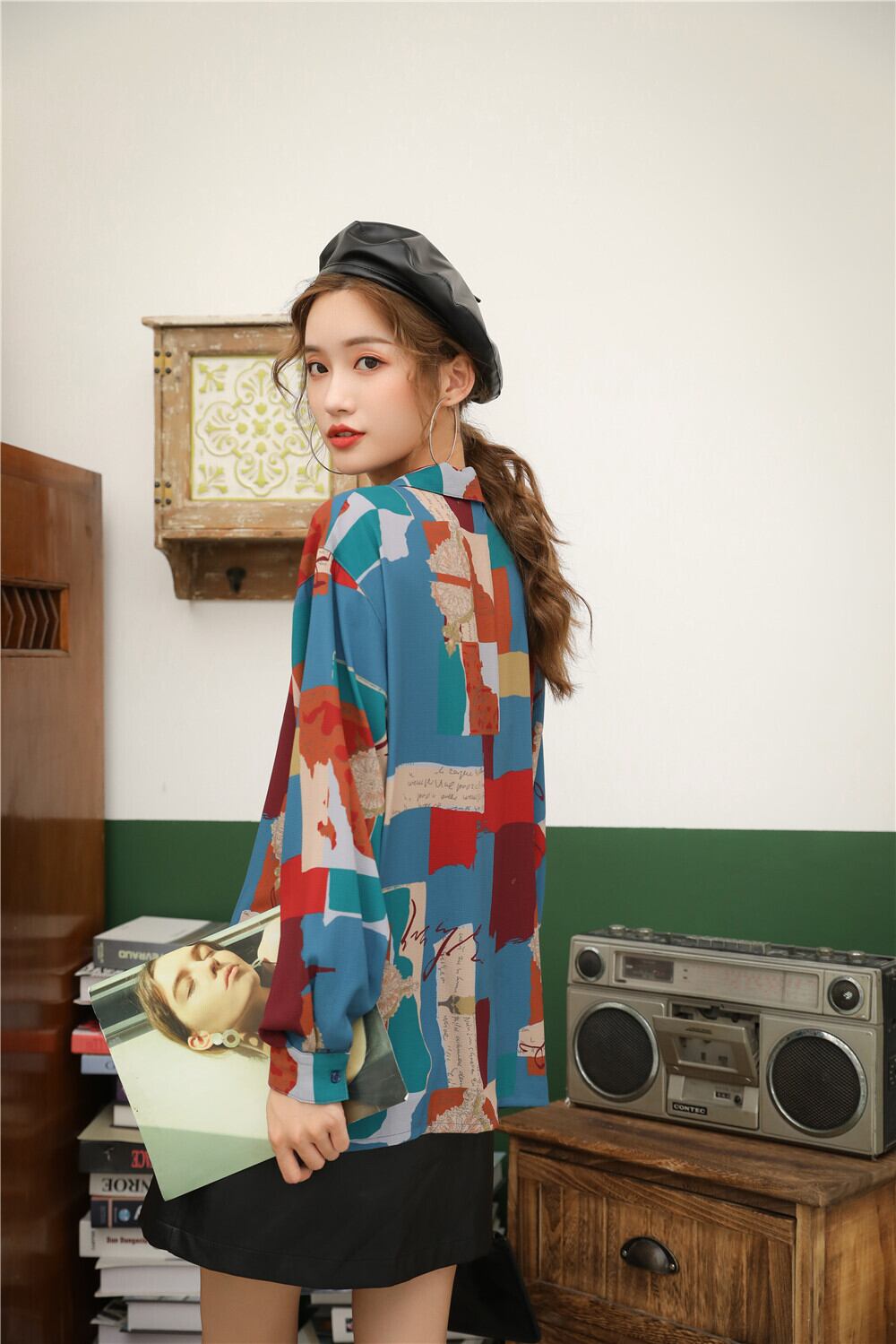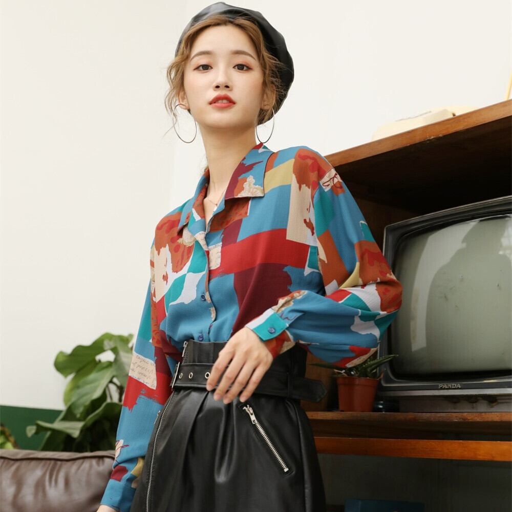 Flowerデザイン スタンダードプリントシャツ レディーススプリング秋物韓国ファッションスタイルルーズ ロング レトロ 春物 オータム フラワーデザイン 長袖 GroundMODE473073958997 | pleglad Ground