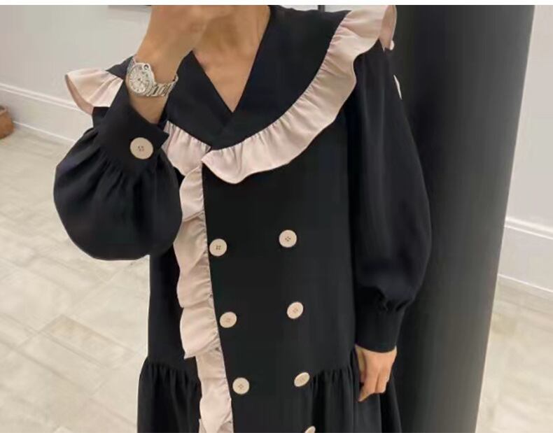 スカート 秋物スタンダードルーズダブルブレストワンピース レトロ オータム GroundMODE57062867579