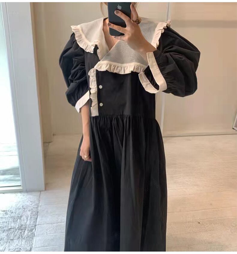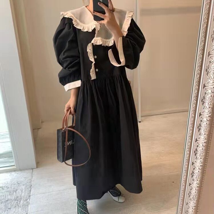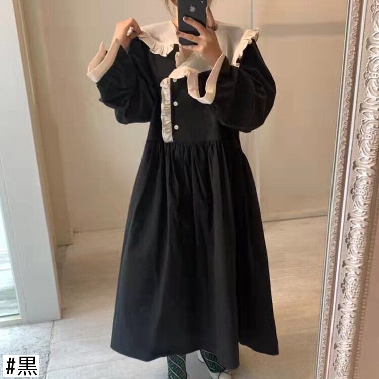 秋物スタイル韓国ファッションスタンダードスカート カラールーズスリーブワンピースレディース レトロ オータム GroundMODE6487880997