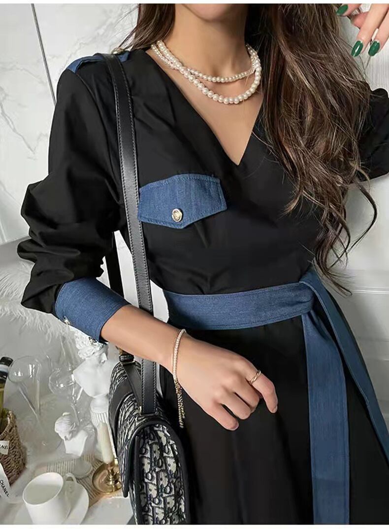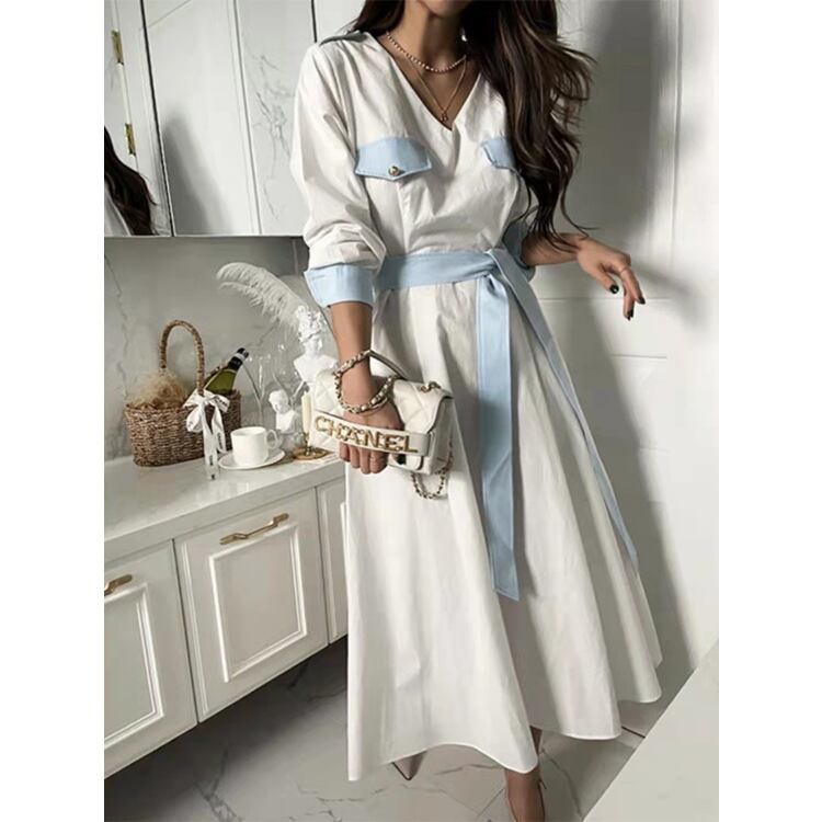 韓国ファッションスカート ウェストスタイルVネックワンピース レース レースアップ ウエスト GroundMODE38858631362