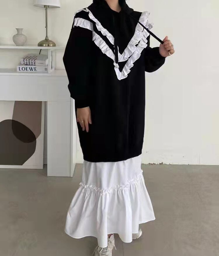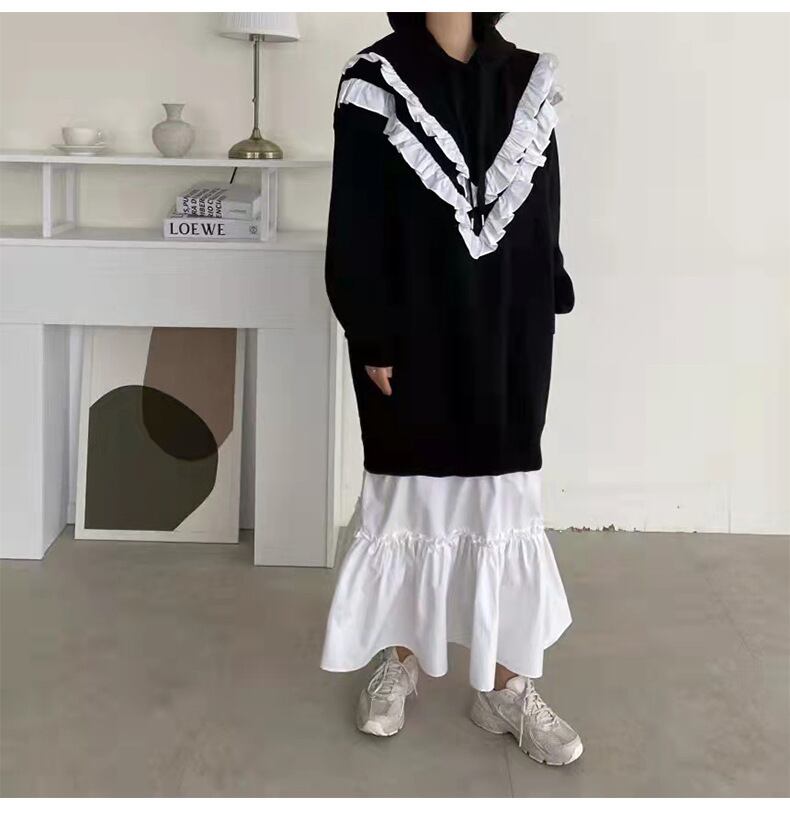 ワンピース秋物フードラッフルスカート セーター オータム GroundMODE99893397834
