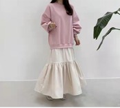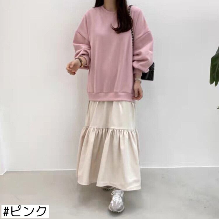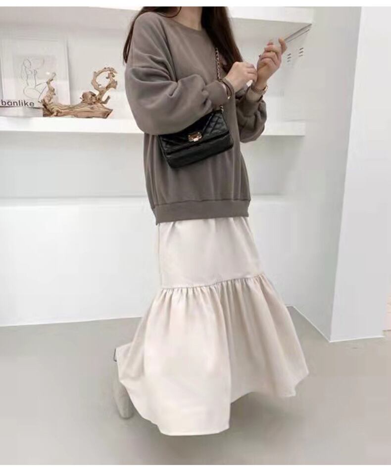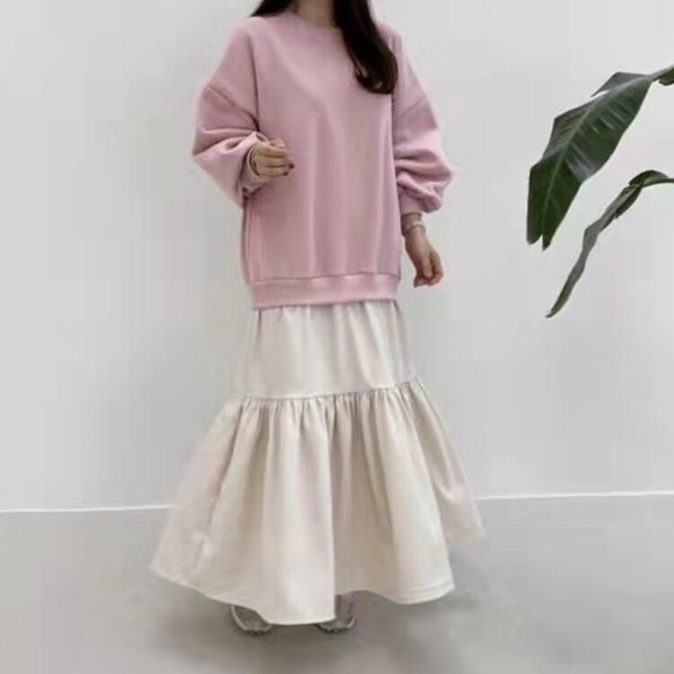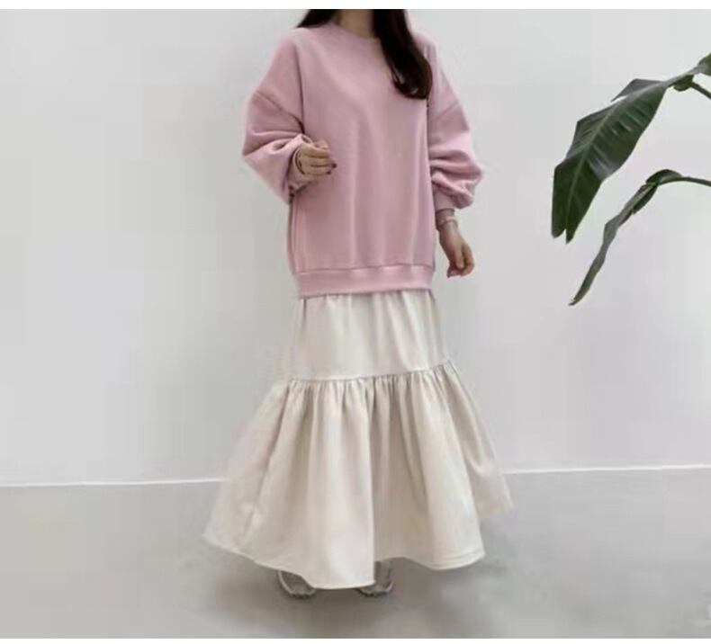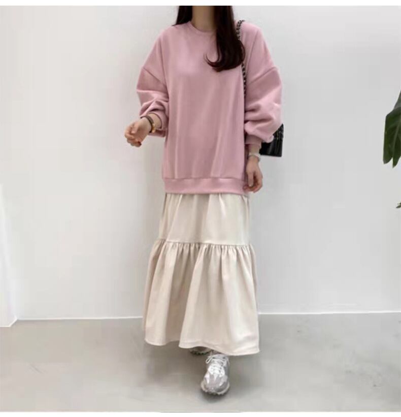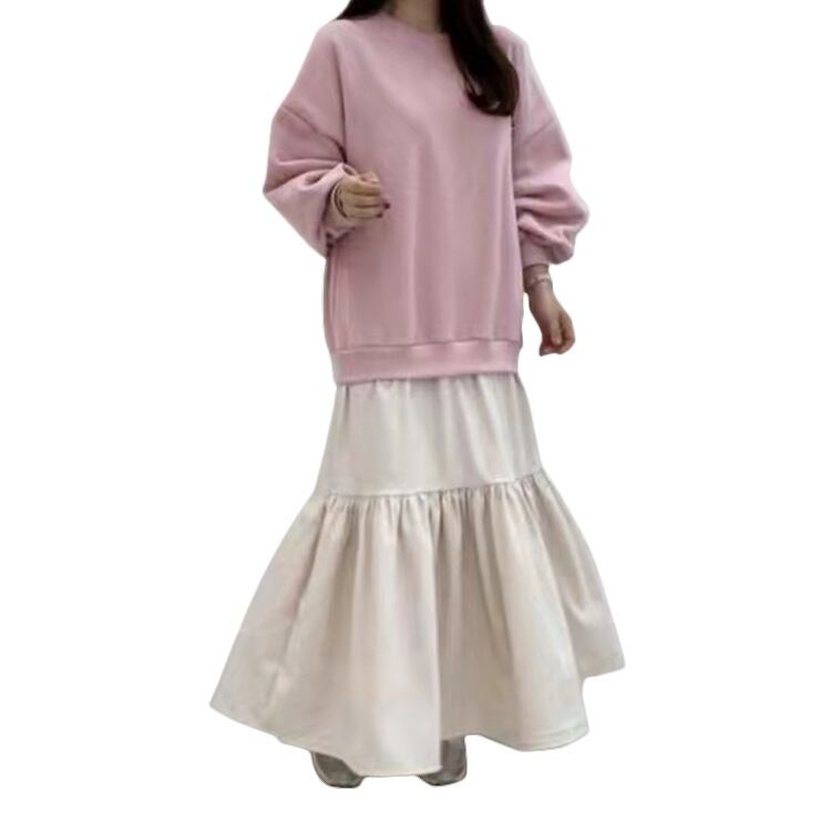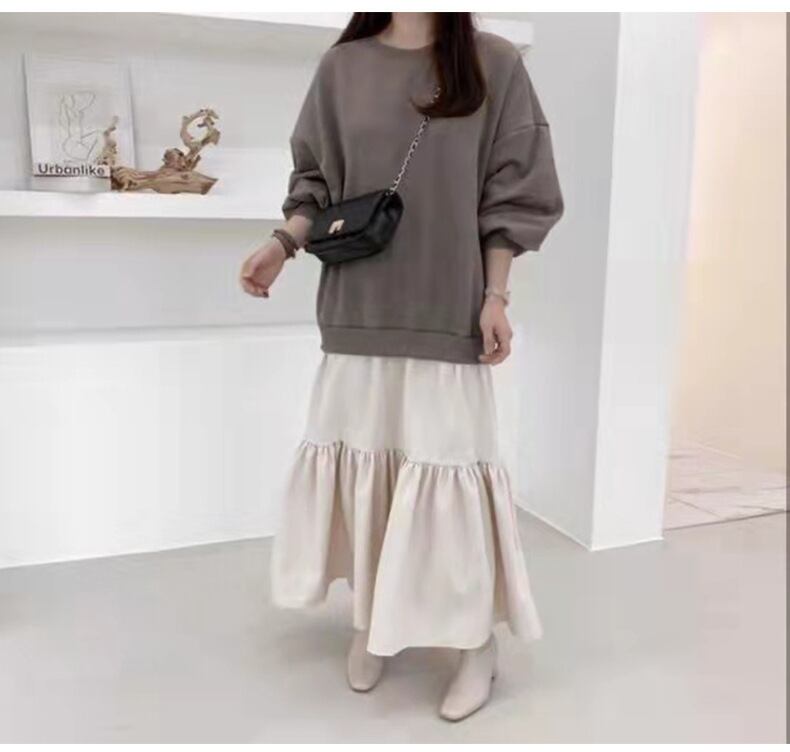 ラウンドネックセーター ワンピース秋物ルーズ薄手 ロング 大きめサイズ オータム Oネック 長袖 GroundMODE4708187812