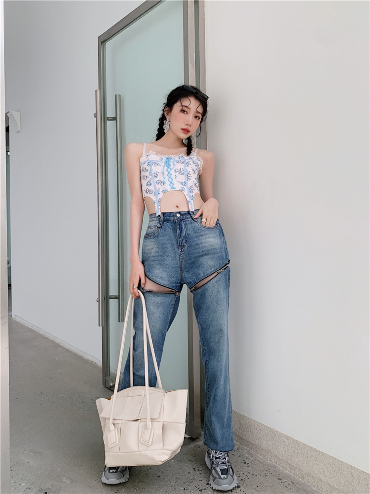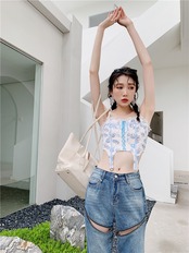 スプリング夏服スタンダードブルーフローラルバンド コルセット レトロ 大人ガーリー スウィート キュート カジュアル 春物 夏物 花柄 GroundMODE253357013562 | pleglad Ground