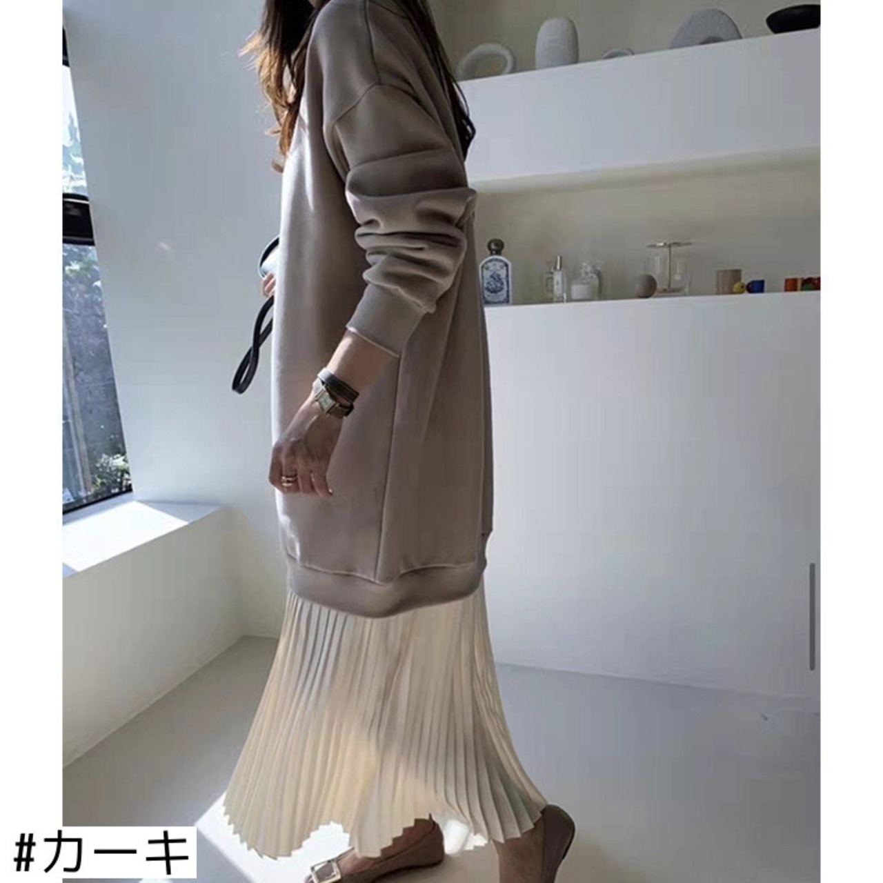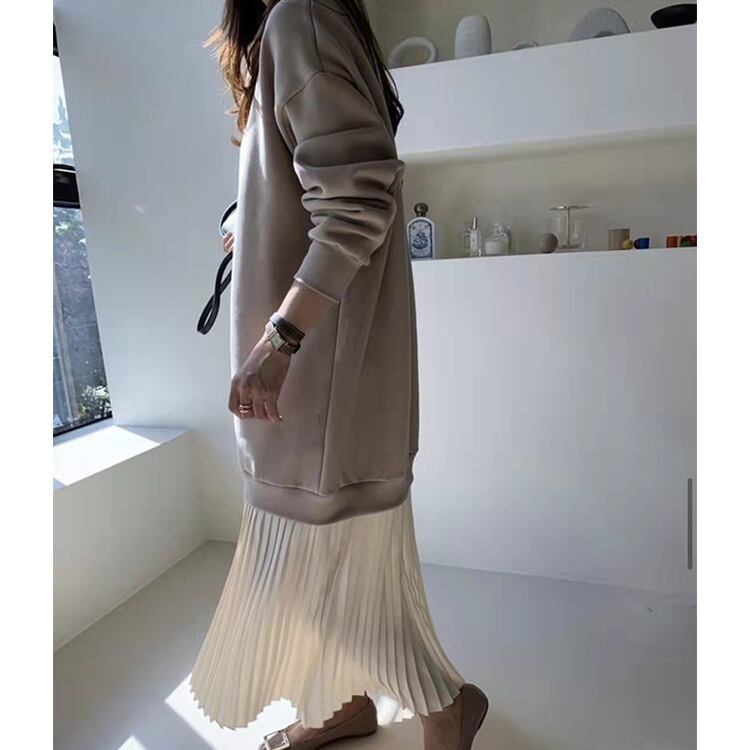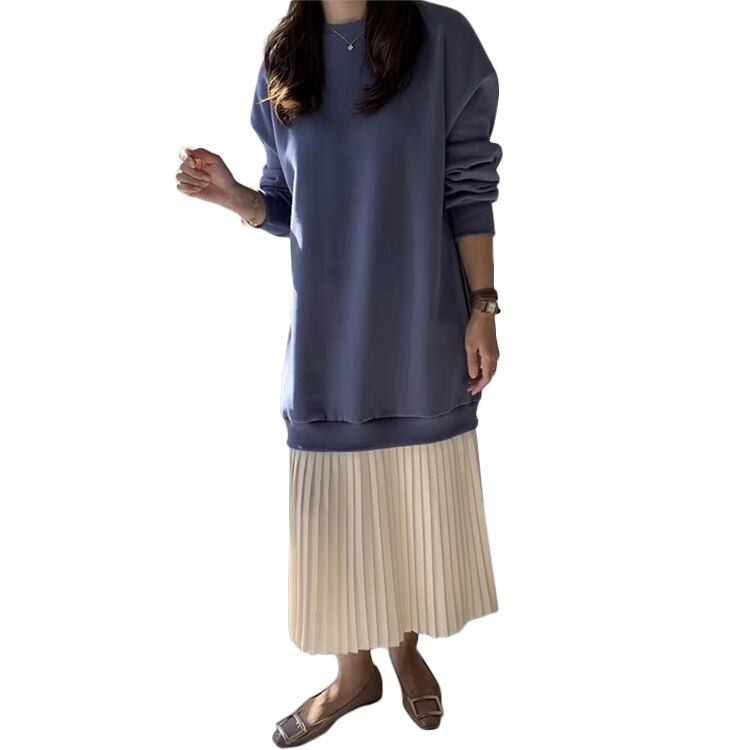 韓国ファッションカラーラウンドネックセーター スカート ルーズプリーツワンピース Oネック スタイル GroundMODE15482191179