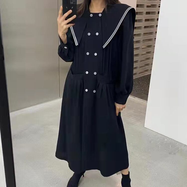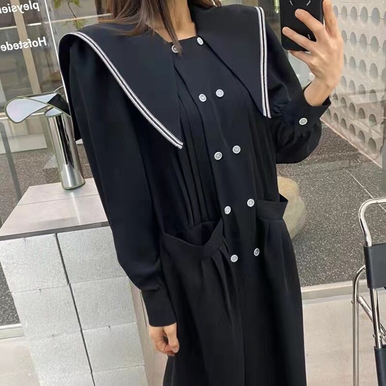 薄手秋物スタイルスカート ダブルブレストワンピース オータム GroundMODE78156522773