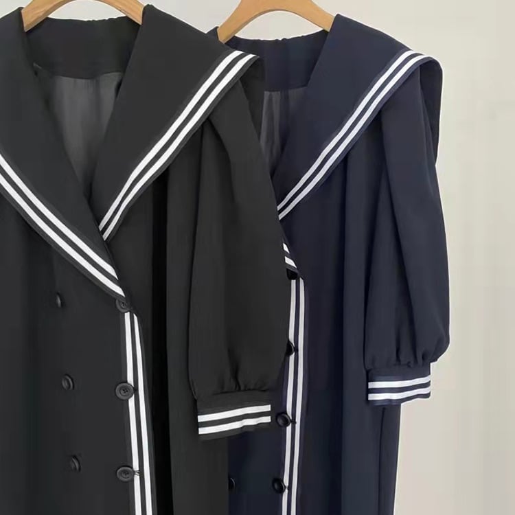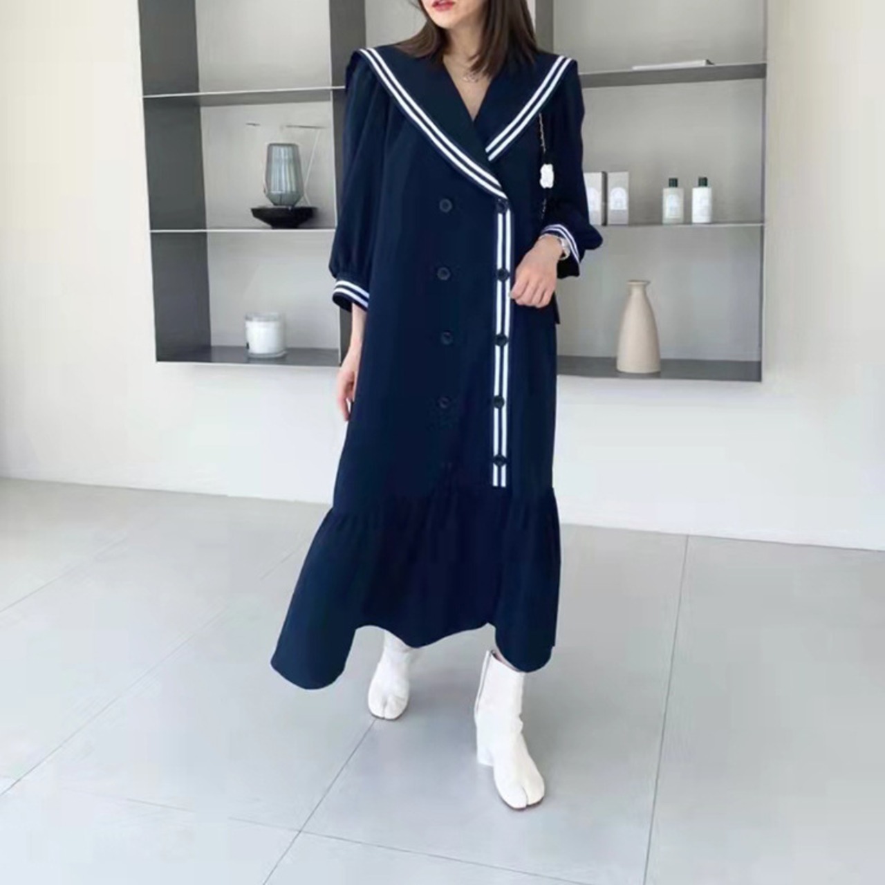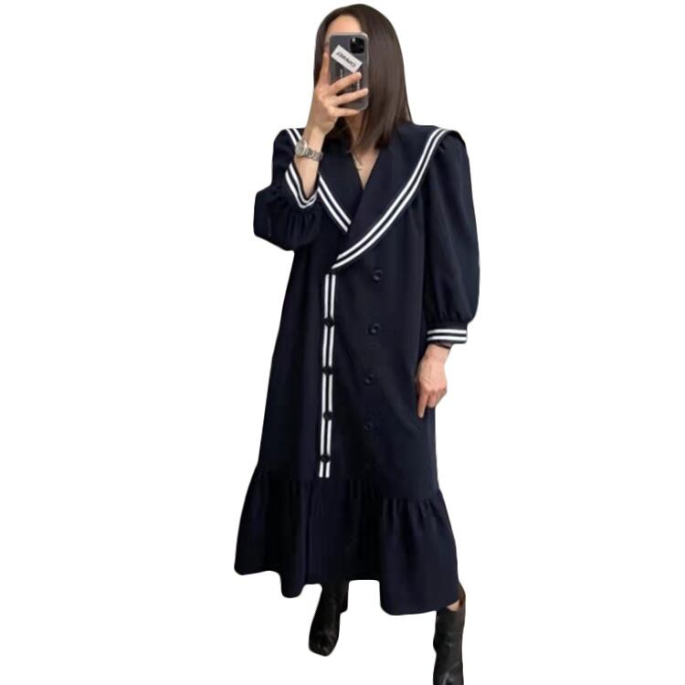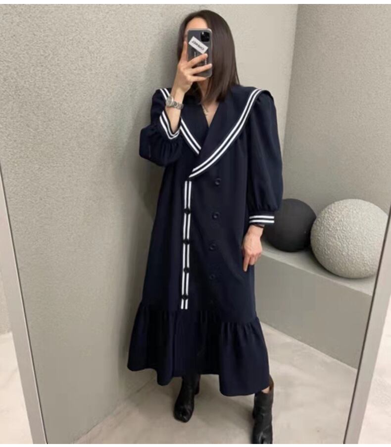 韓国ファッションワンピース秋物ルーズ薄手ストライプVネック ロング オータム 長袖 GroundMODE76046226300