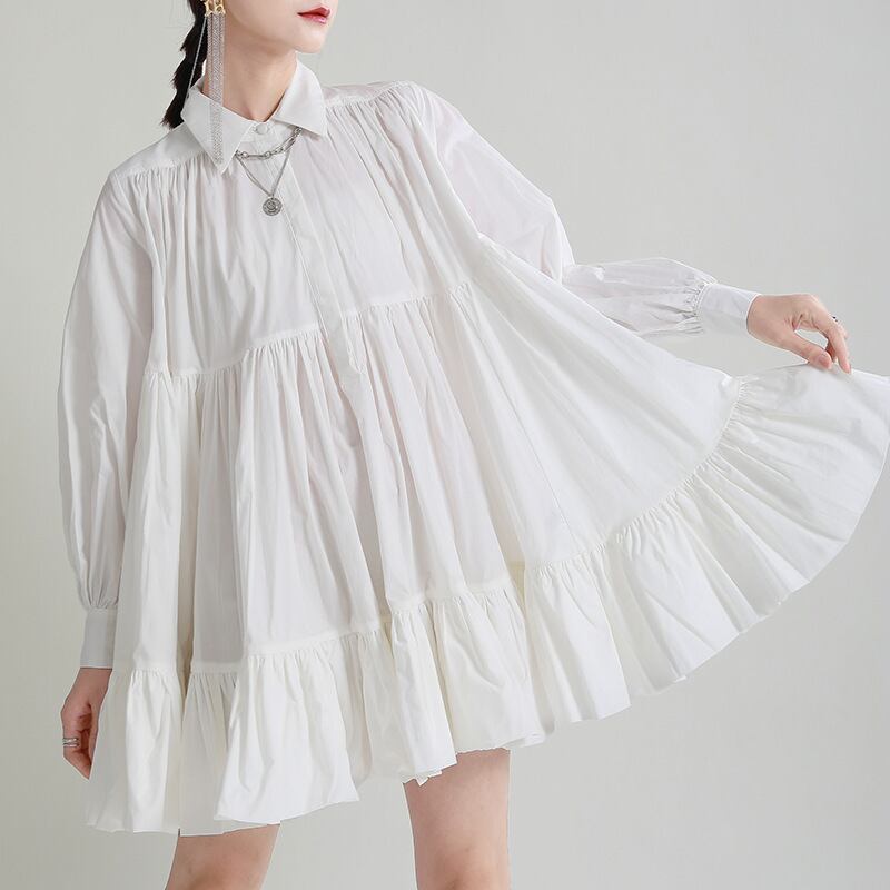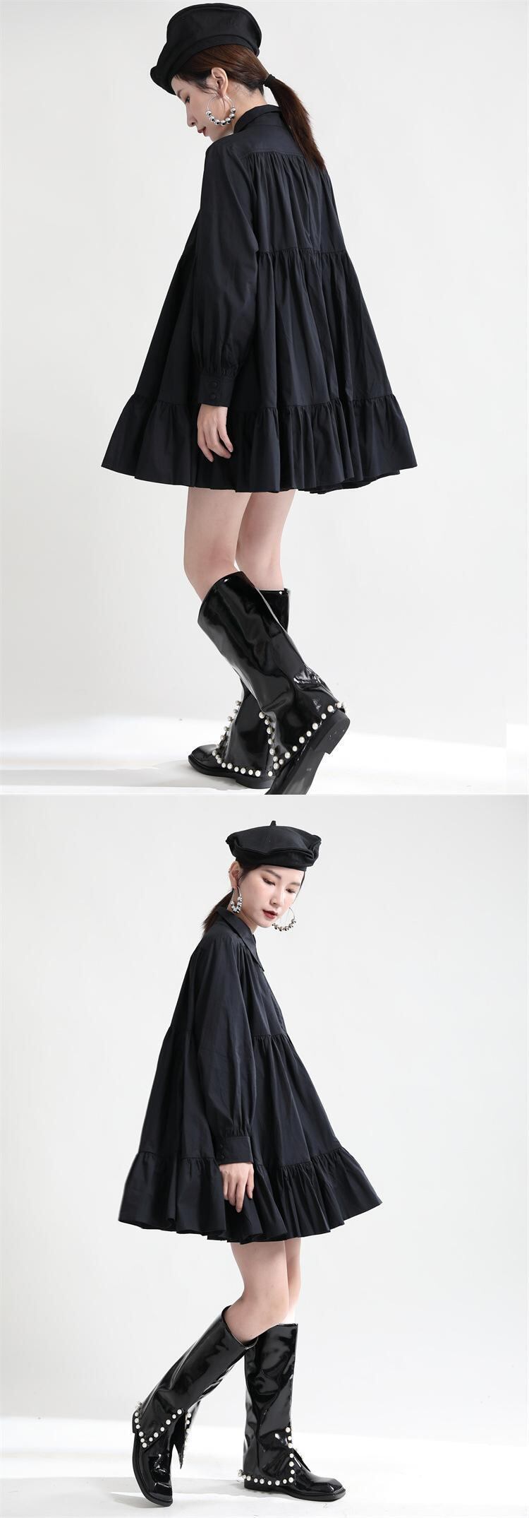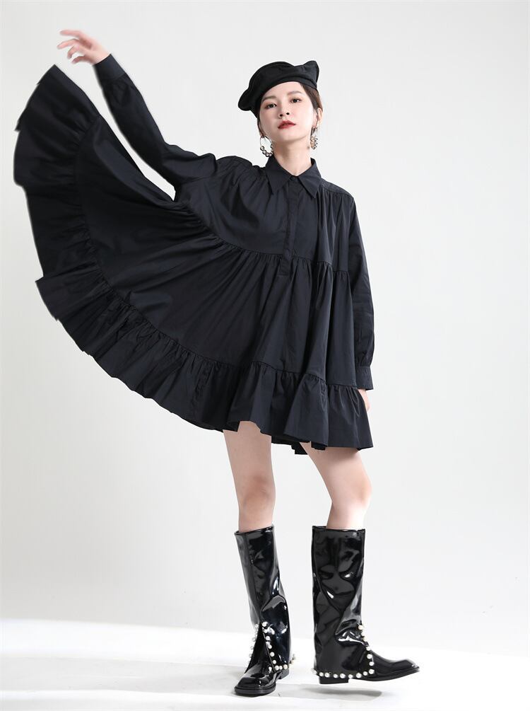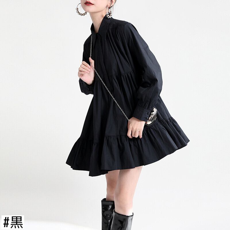 秋物ウィンタースタンダードシャツ スタイルルーズソリッド カラースカート ロング レトロ オータム 冬物 ソリッドカラー ワンピース 長袖 GroundMODE348723063778 | pleglad Ground