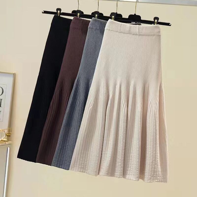 ニットスカート 秋物セーター ハイウェストウェストラッフル オータム ウエスト GroundMODE93353031615
