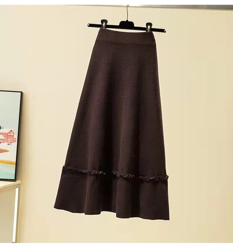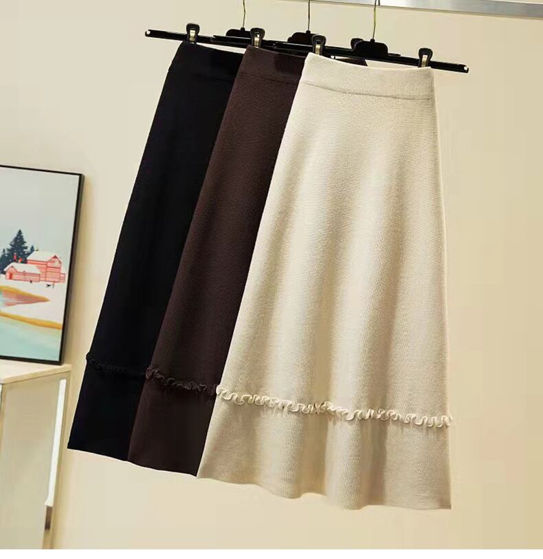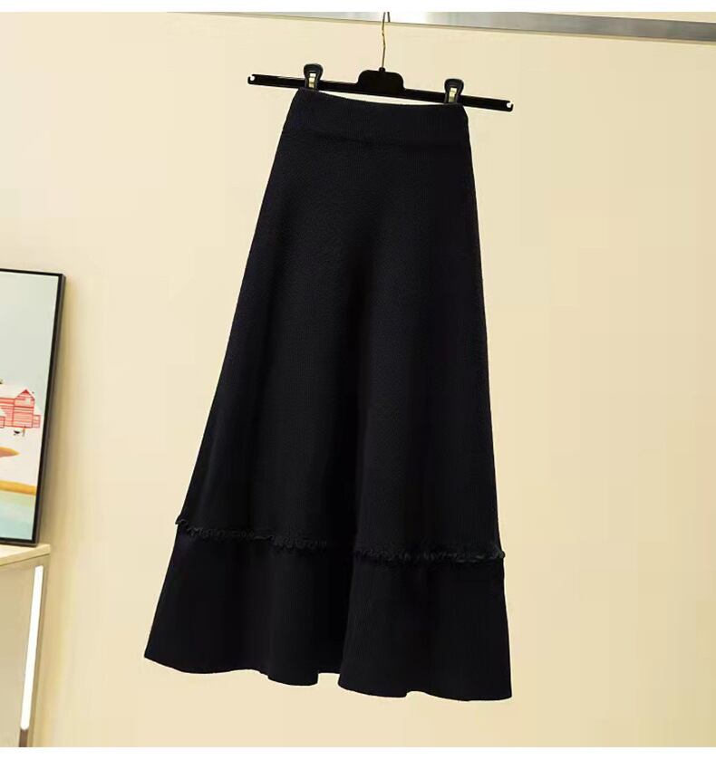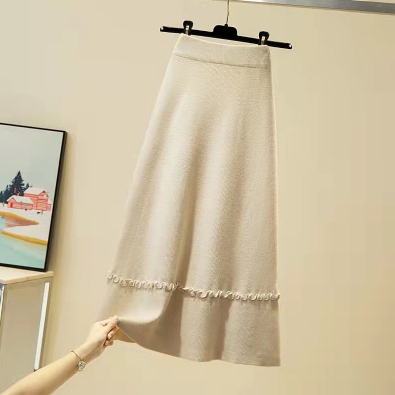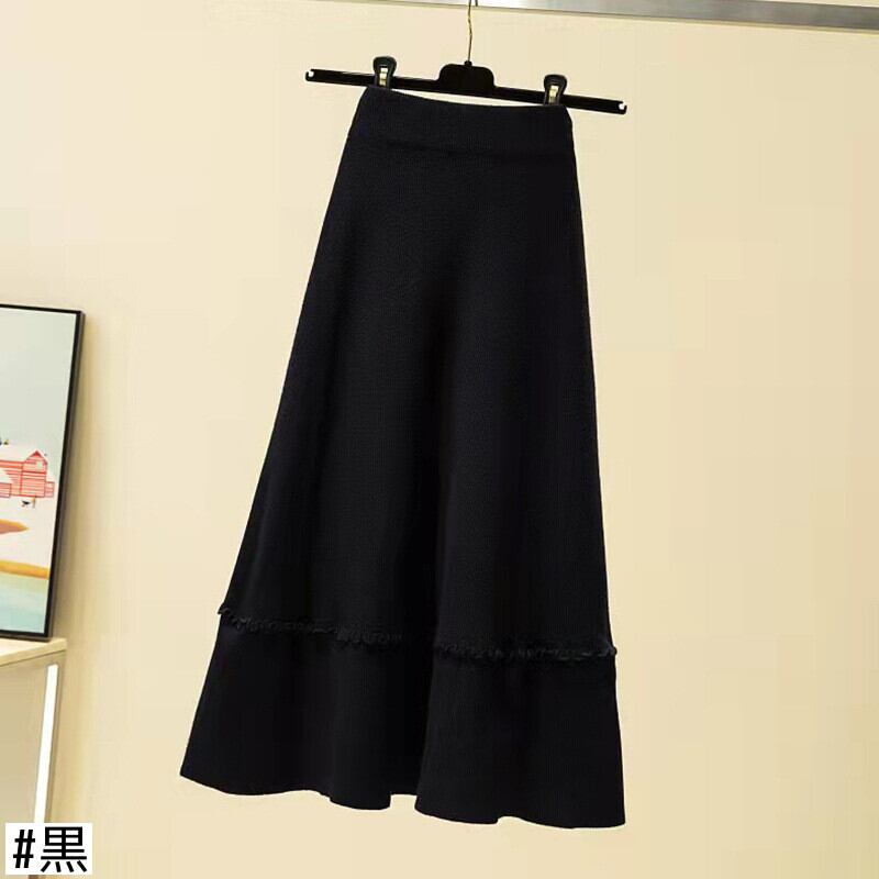 韓国ファッションハイウェストAラインスカート 秋物スプリング薄手ニット 春物 オータム ウエスト GroundMODE42650011568