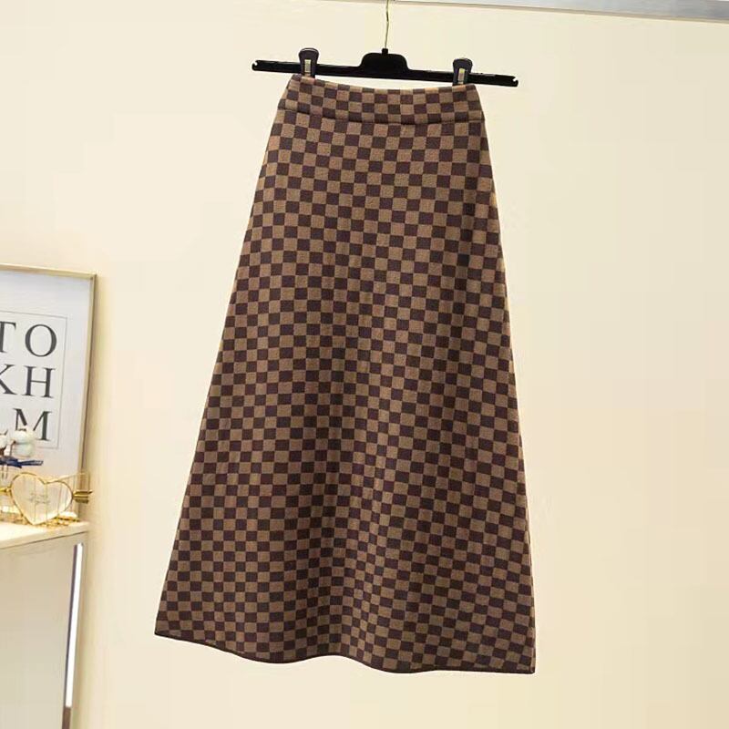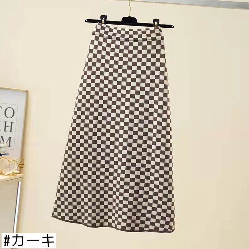 格子柄ニットスカート スリムウェスト ヨーロピアン ウエスト GroundMODE33284505640