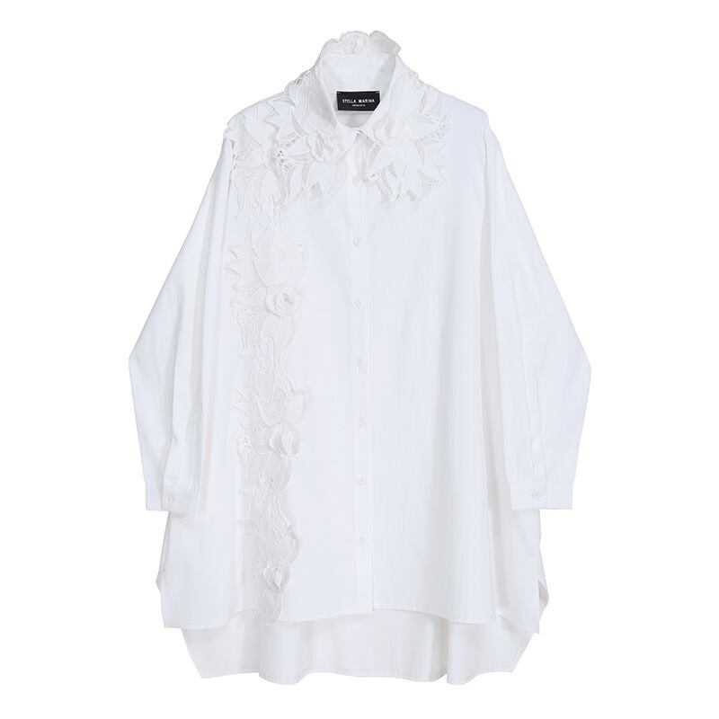 ブラウス レディース秋物ウィンタールーズシャツ レースFlowerデザイン 薄手 ロング 大きめサイズ オータム 冬物 フラワーデザイン 長袖 GroundMODE43552046817 | pleglad Ground