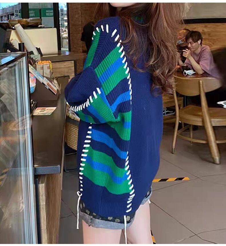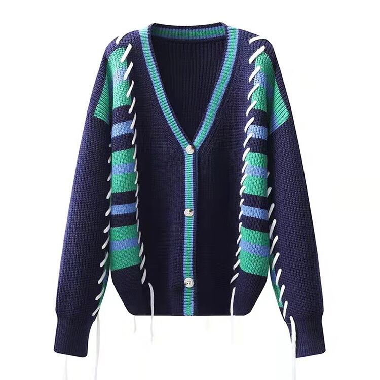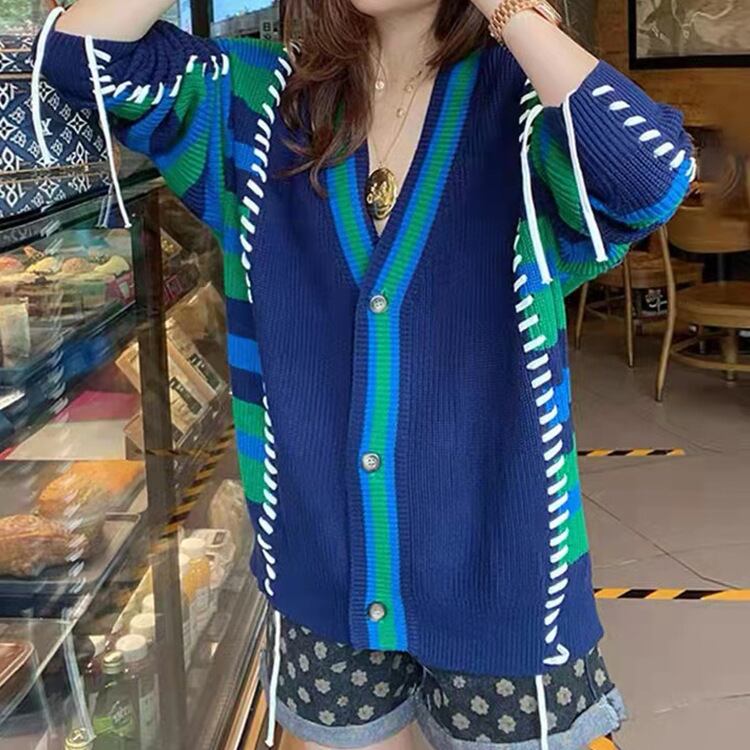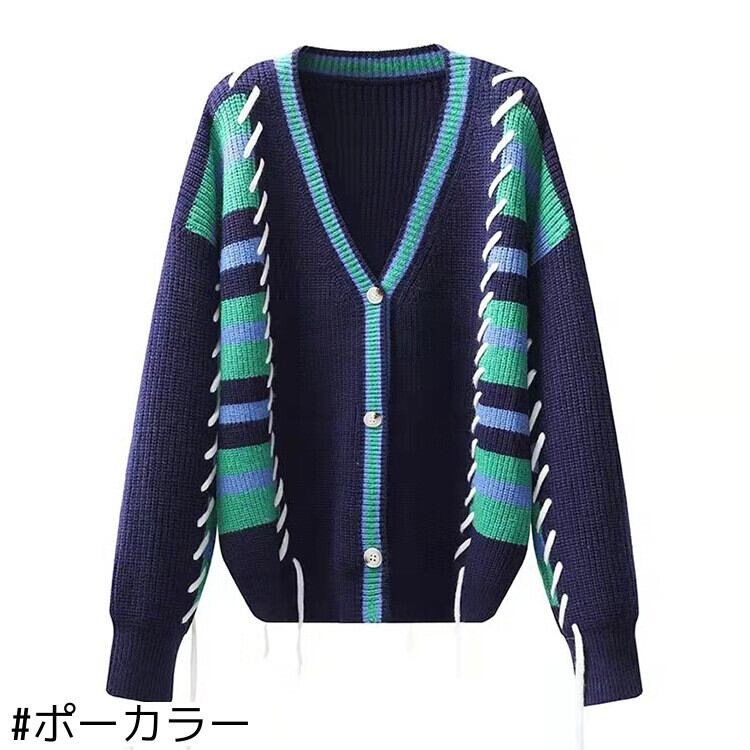 カラーバンドニットカーディガンスタイルルーズセーター ジャケット レディース GroundMODE77042487501