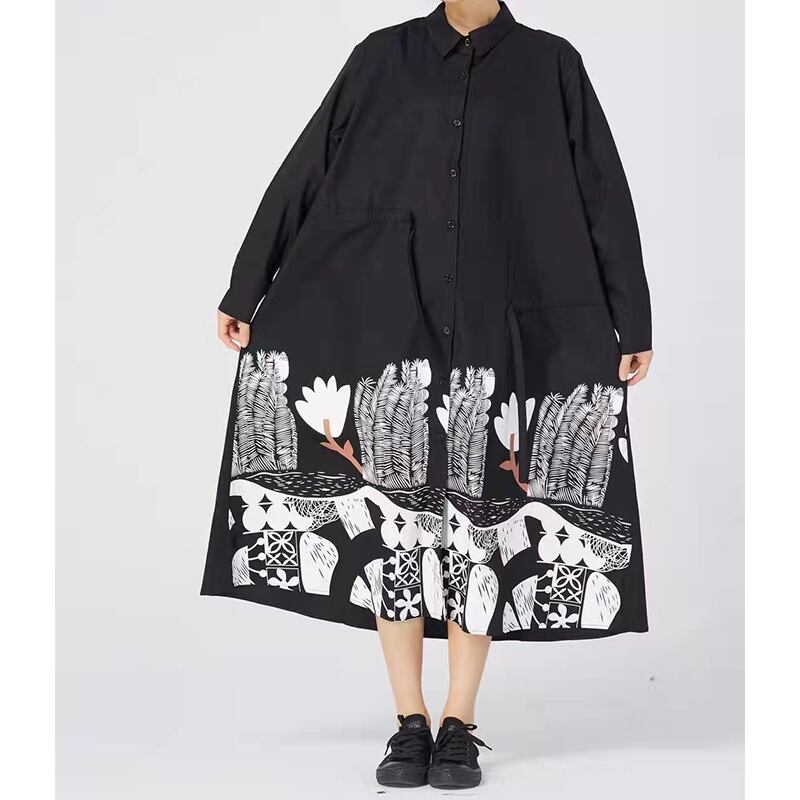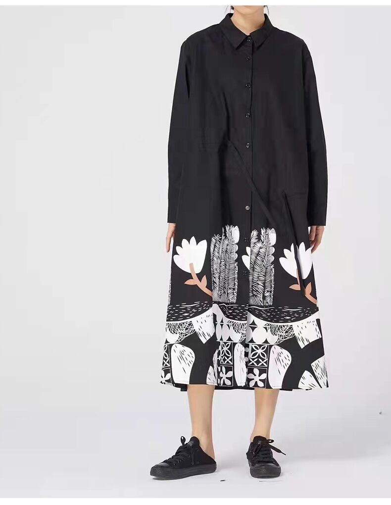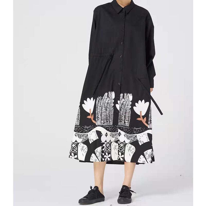 ワンピース秋物スプリングスタイルプリント柄薄手シャツ スカート 大きめサイズ 春物 オータム GroundMODE73147427068