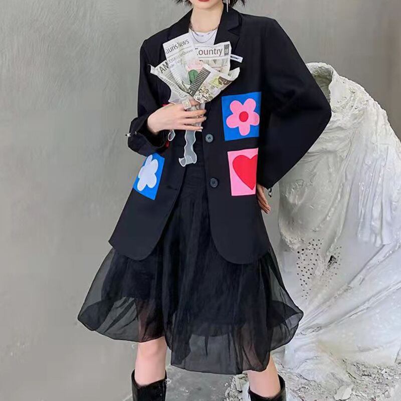 秋物Flowerデザイン ジャケット レディース ロング オータム フラワーデザイン 長袖 GroundMODE92474313304