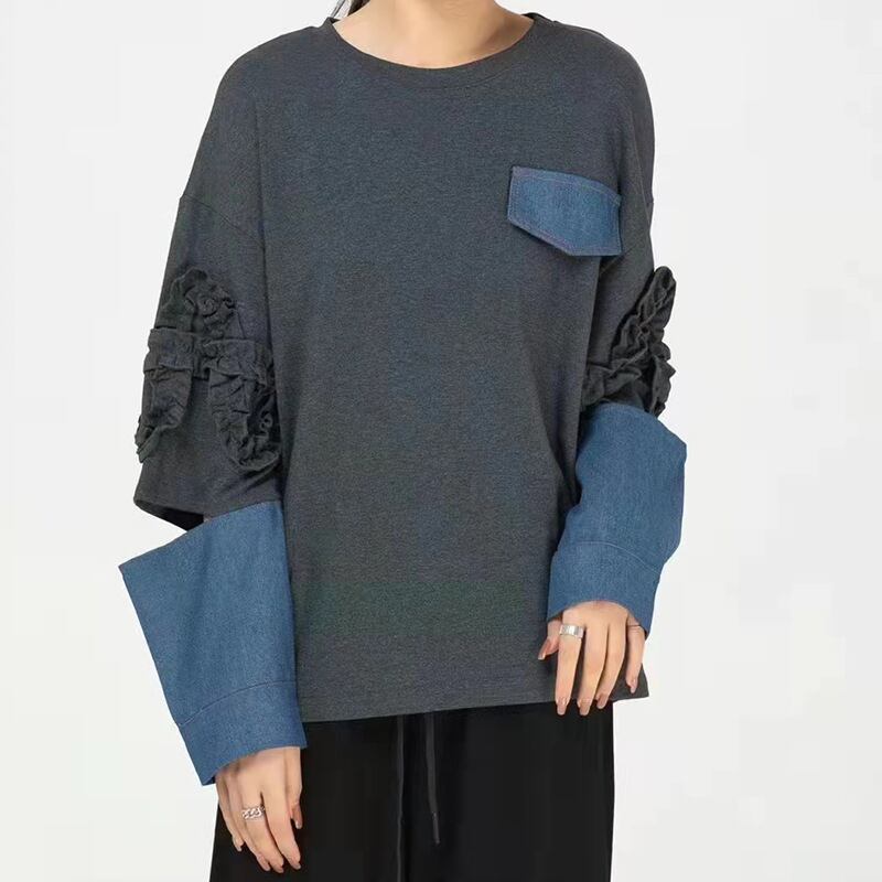 秋物スタイルスタンダードジャケット ルーズ薄手セーター レディース ロング レトロ オータム ステッチ 長袖 GroundMODE83702466149