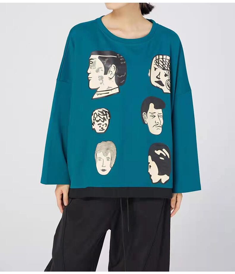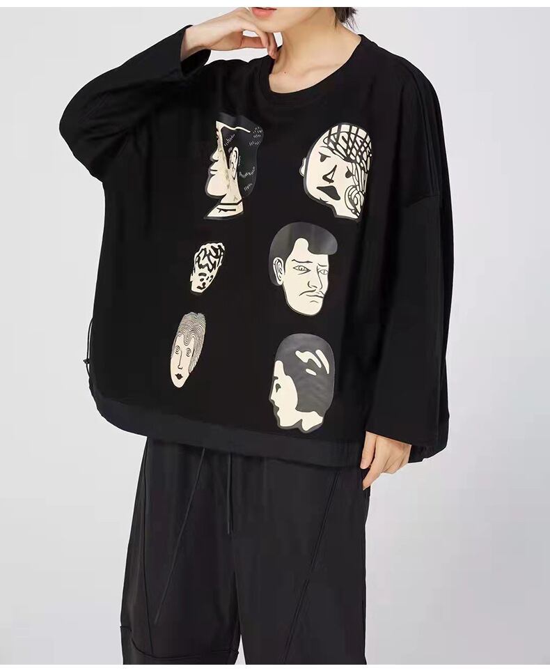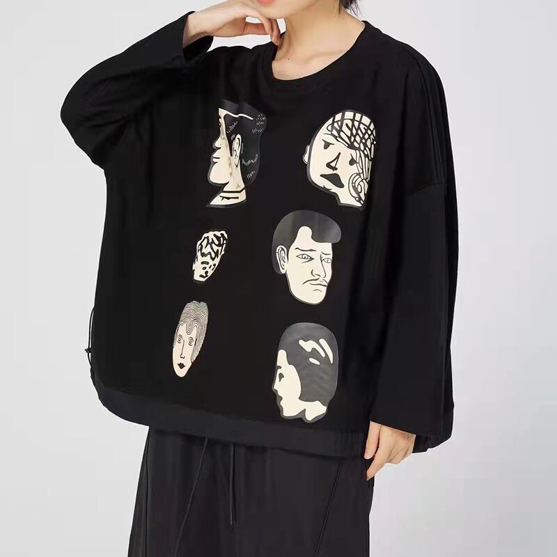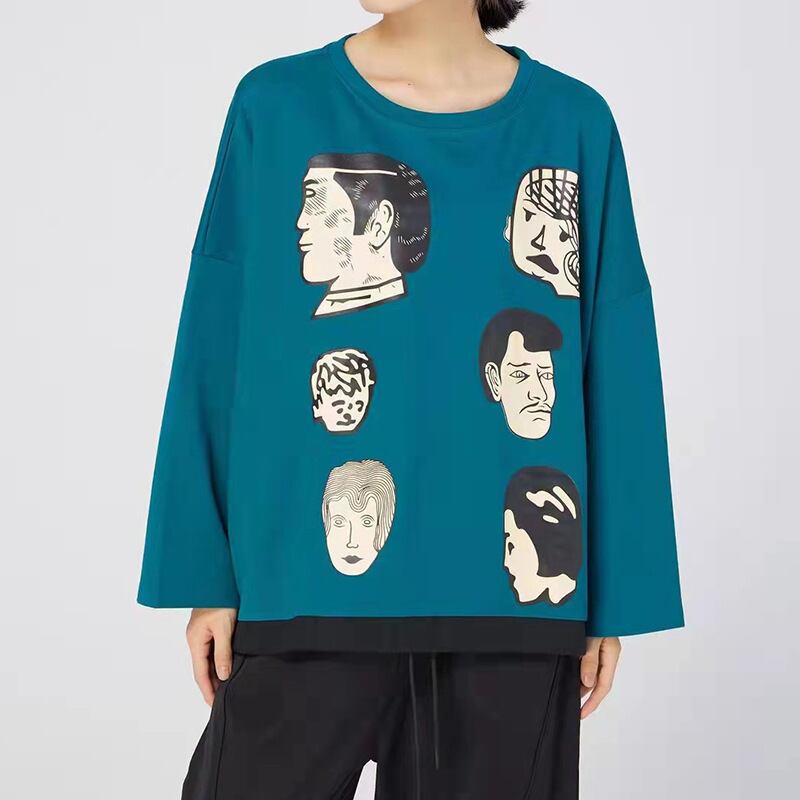 ラウンドネックプルオーバー トップス 秋物ウィンタースタイルプリントルーズセーター レディース ロング オータム 冬物 Oネック 長袖 GroundMODE72269321173