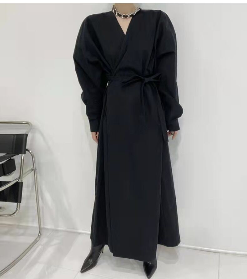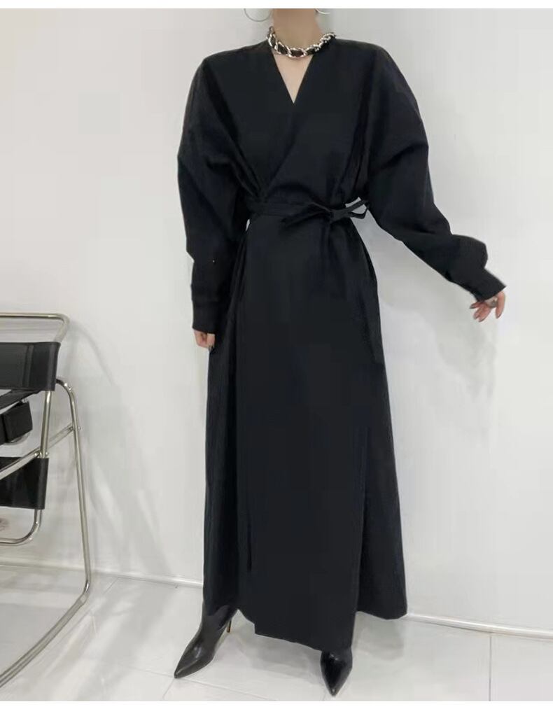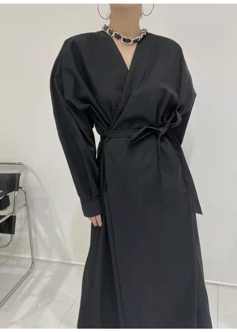 秋物ウィンタースタイルブラックVネックワンピース薄手スカート レース オータム 冬物 レースアップ GroundMODE14085846202