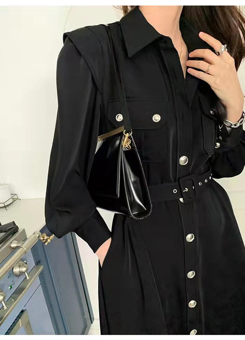 秋物ワンピースベルト ウェスト薄手スカート オータム ハーネス ウエスト GroundMODE8272845689
