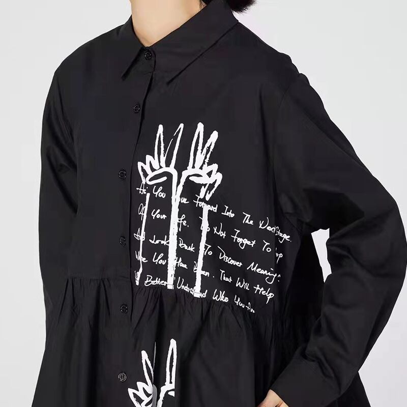 プリントワンピーススプリング秋物ミニマリストスタイルシャツ スカート レディース 春物 オータム ミドル丈 GroundMODE76564979059
