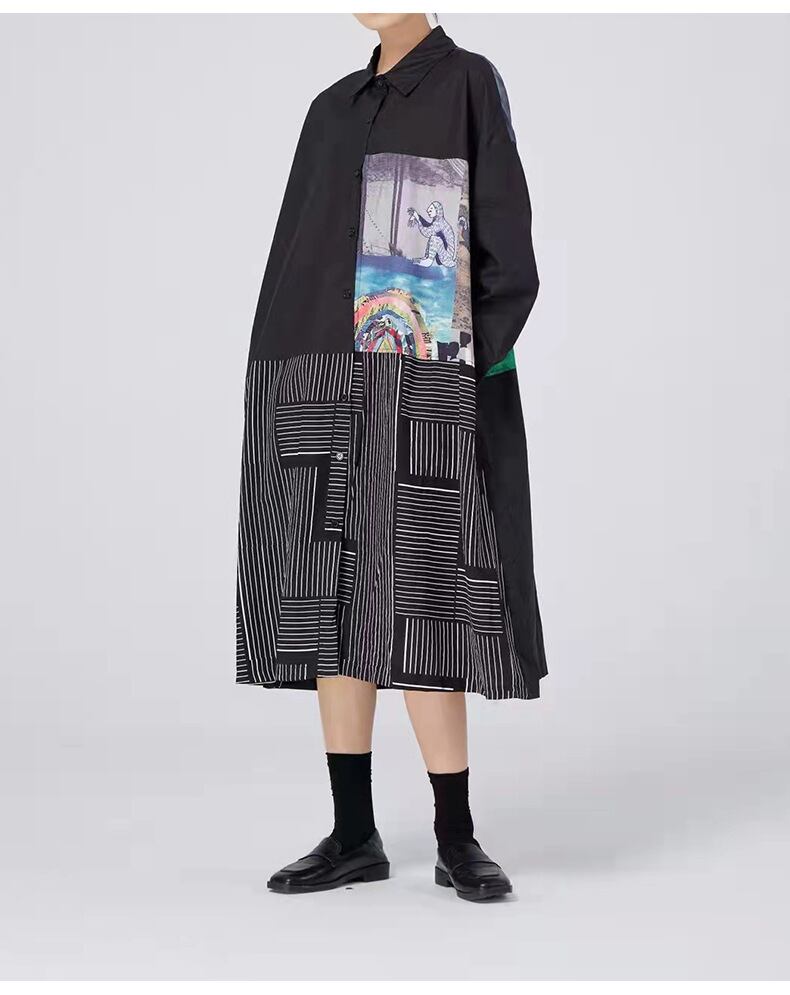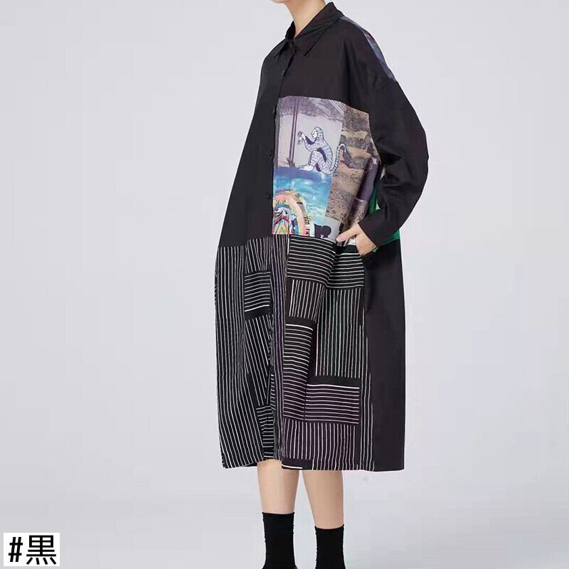 プリントワンピース秋物ルーズシャツ スカート オータム ヨーロピアン ミドル丈 GroundMODE68607878552