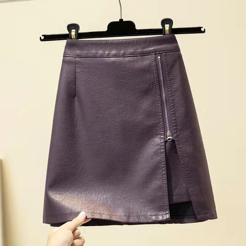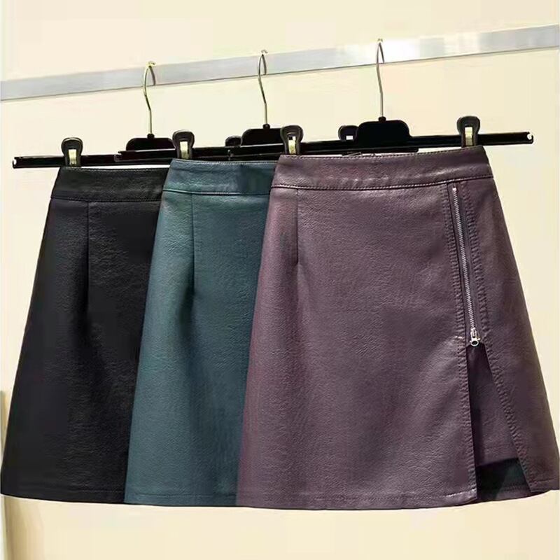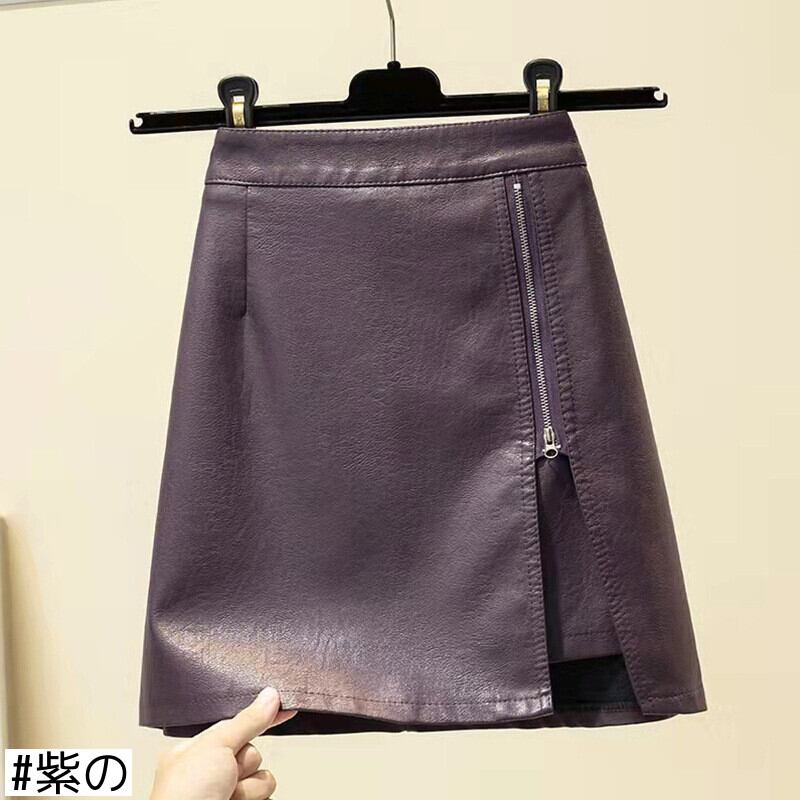 Aラインスカート 秋物ショートジッパーサイドレザー オータム GroundMODE49112230131