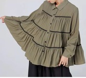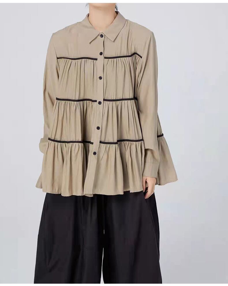 ブラックシャツ 秋物ドレープブラウス レディースプリーツルーズ ロング オータム 長袖 GroundMODE62763254571