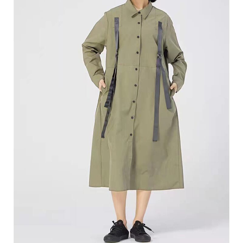 ワンピース秋物スプリングウィンタースタイルルーズシャツ ロング 大きめサイズ 春物 オータム 冬物 長袖 GroundMODE51044611375