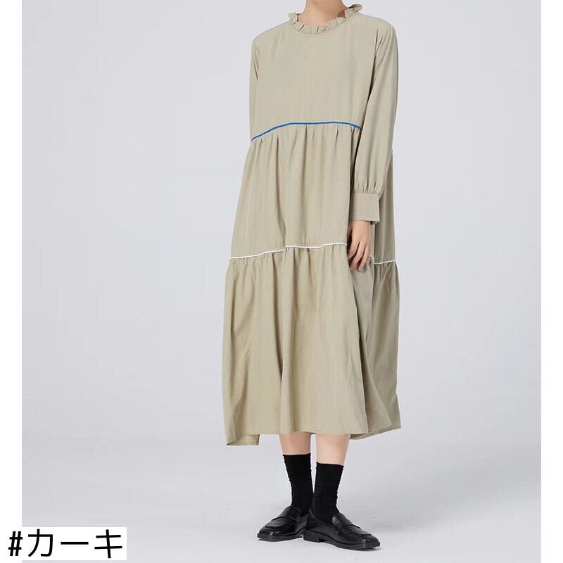 ワンピース秋物スカート ルーズ薄手 大きめサイズ オータム ミドル丈 GroundMODE12802276159