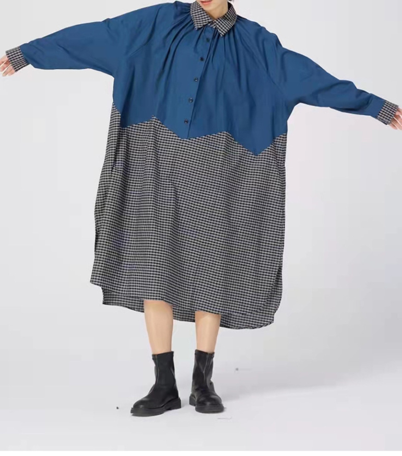 ワンピースルーズ秋物スタイル韓国ファッションカラー長袖スリーブ ロング オータム ステッチ GroundMODE68372708080