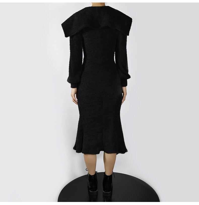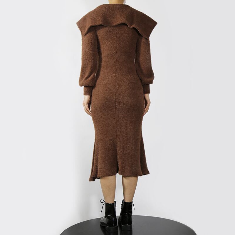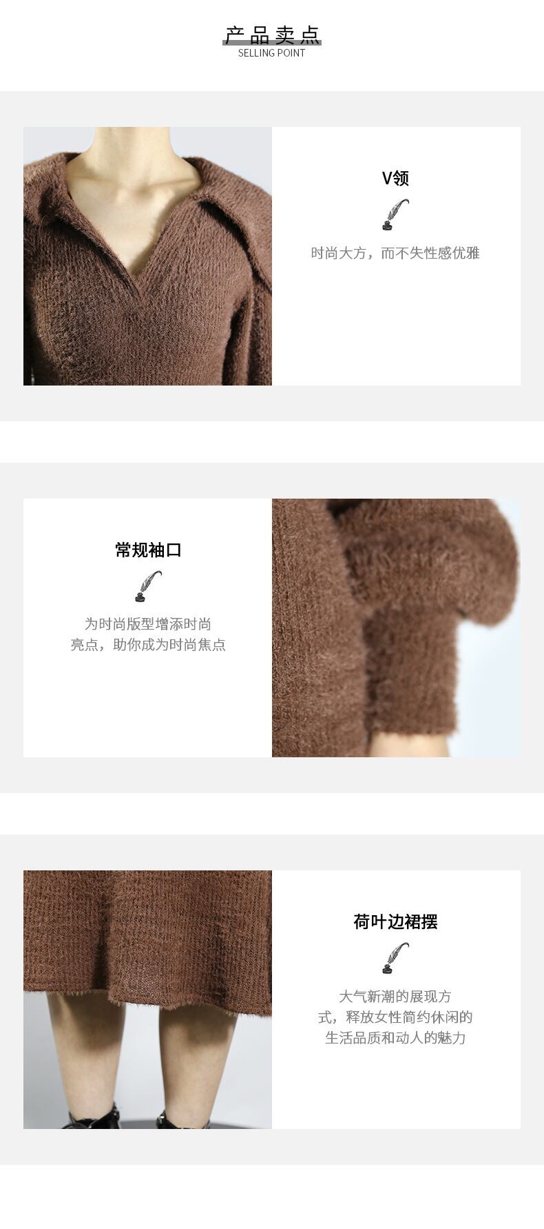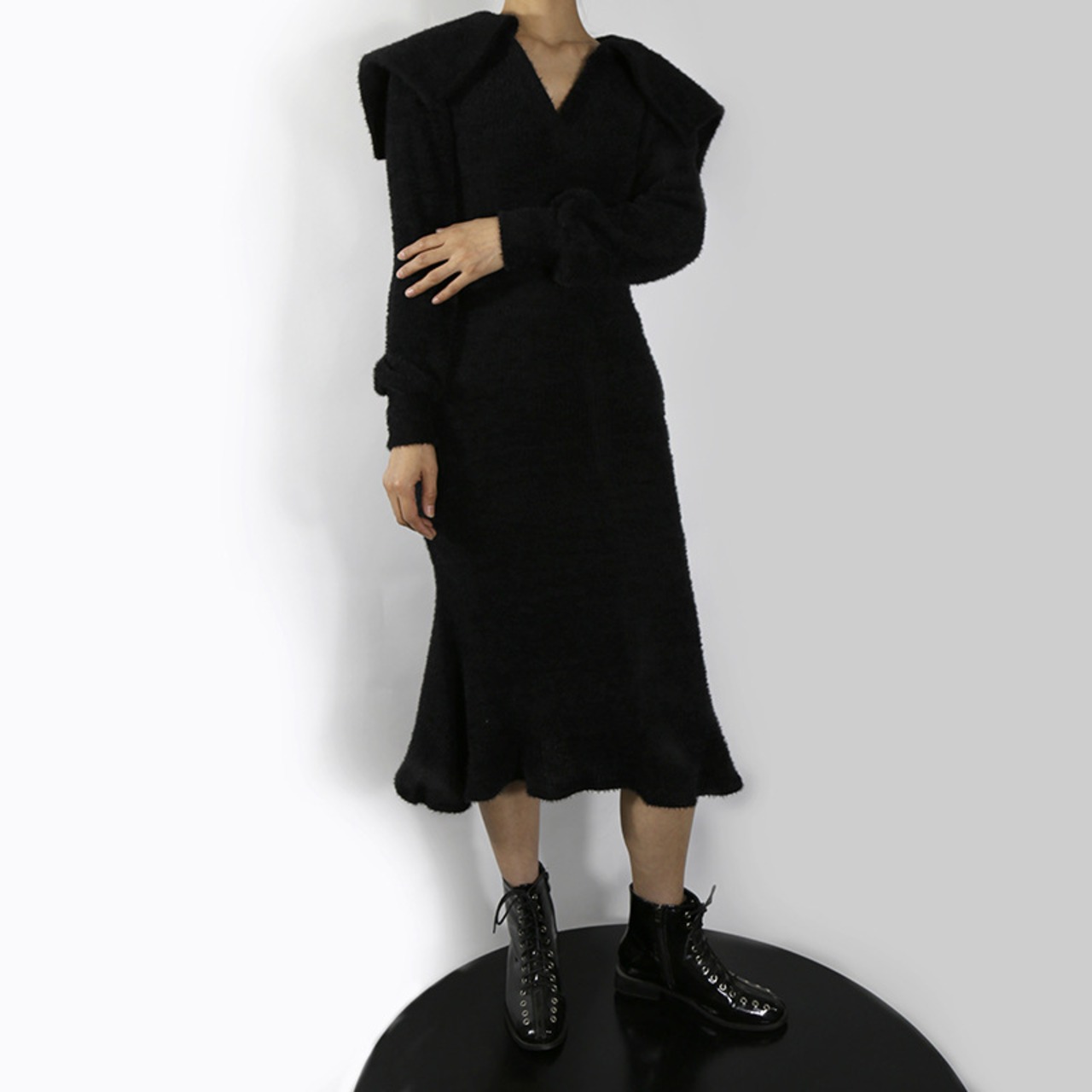 スタンダードワンピースレディース秋物ウィンタースタイルスリムVネックセーター ロング レトロ オータム 冬物 長袖 GroundMODE93472370725
