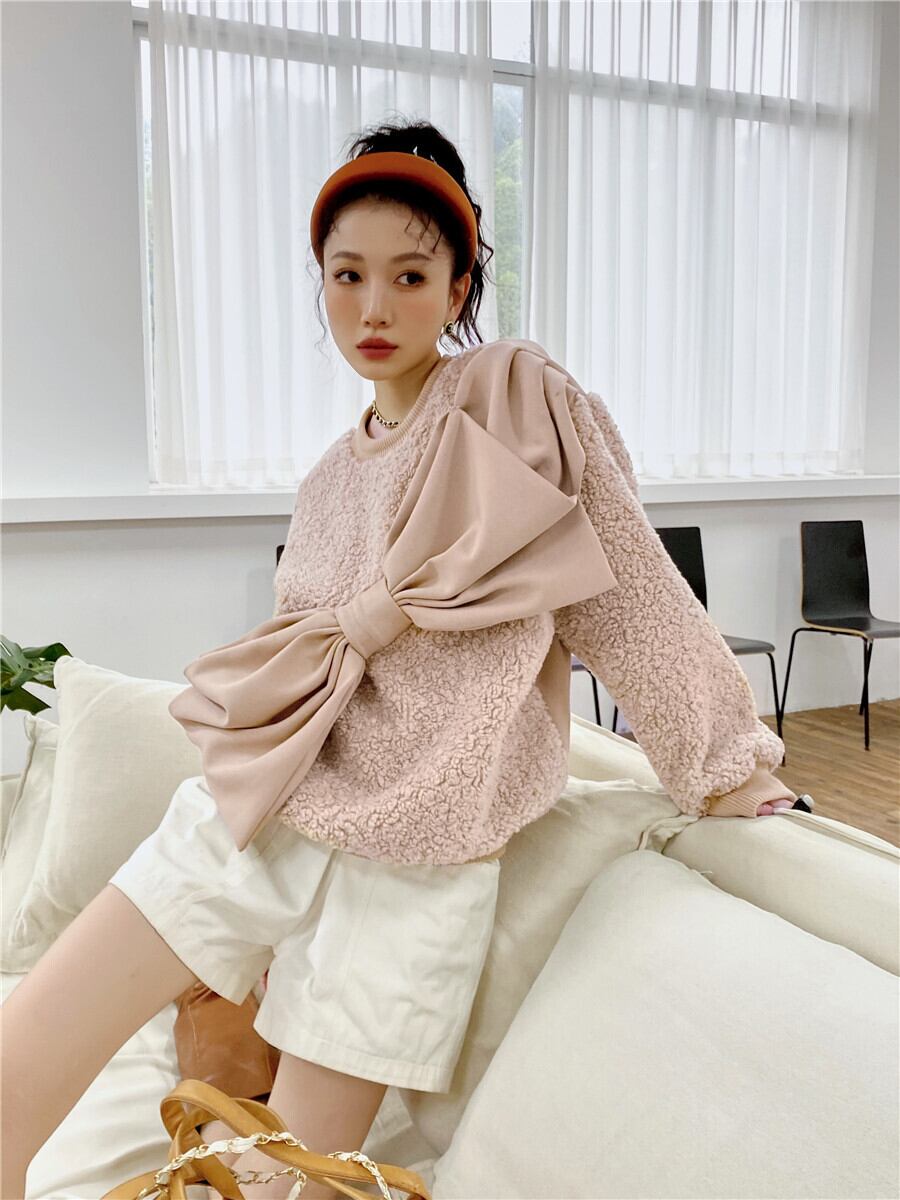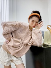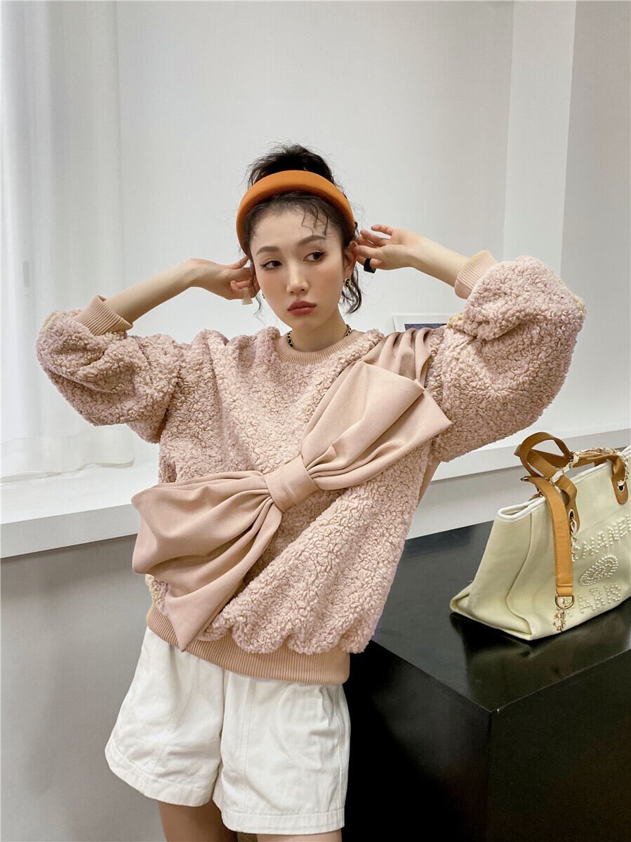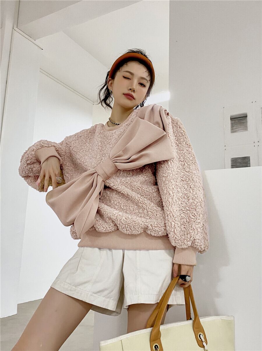 プルオーバー カジュアルジャケット レディースウールラウンドネックルーズ秋物ウィンター リボン オータム 冬物 Oネック GroundMODE233038344030 | pleglad Ground