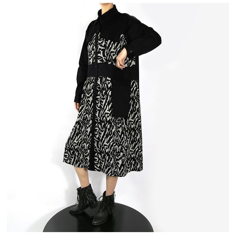 韓国ファッションスタンダードワンピース秋物ウィンター ロング レトロ 大きめサイズ オータム 冬物 ポケット多め マルチポケット スタイル 長袖 GroundMODE55534208597 | pleglad Ground