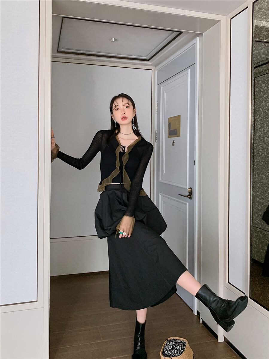秋物ウィンターダークスタンダードFlowerデザイン ブラックAラインスカート レトロ オータム 冬物 フラワーデザイン GroundMODE264441127523 | pleglad Ground
