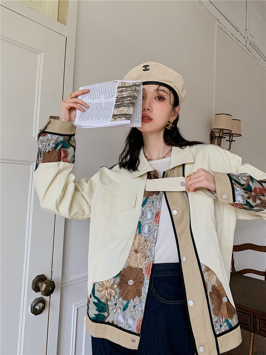 ジャケット スプリング秋物Flowerデザイン 刺繍カラーブラウス カジュアルルーズ 大きめサイズ 春物 オータム フラワーデザイン GroundMODE260463985156 | pleglad Ground
