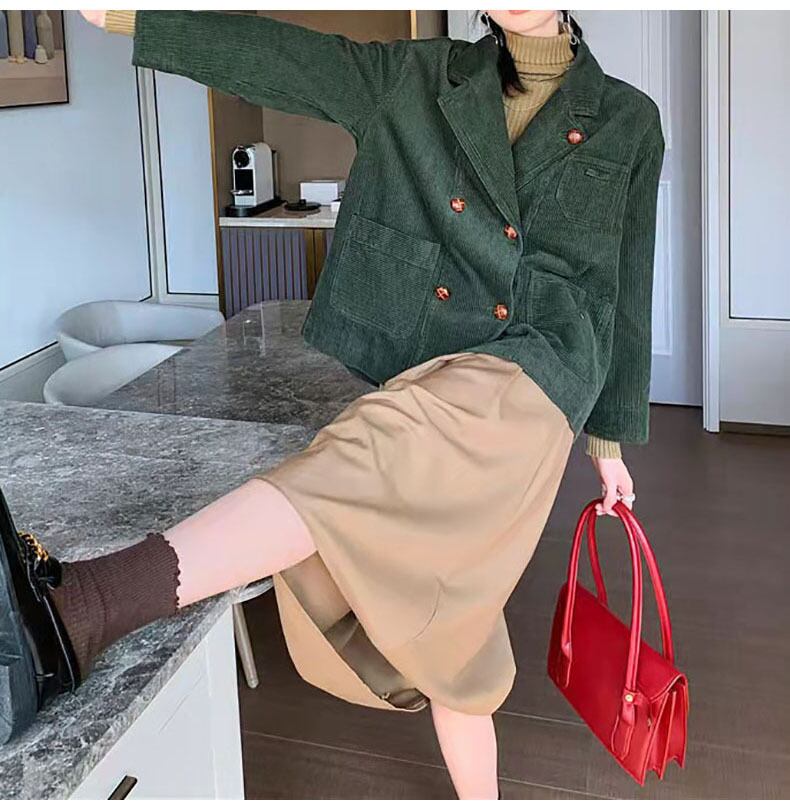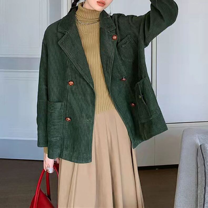 スタンダードコーデュロイジャケット レディース秋物ウィンタールーズダブルブレスト レトロ オータム 冬物 GroundMODE97354822850